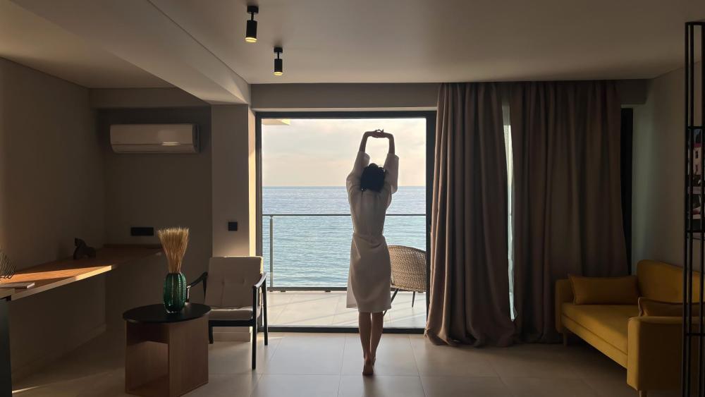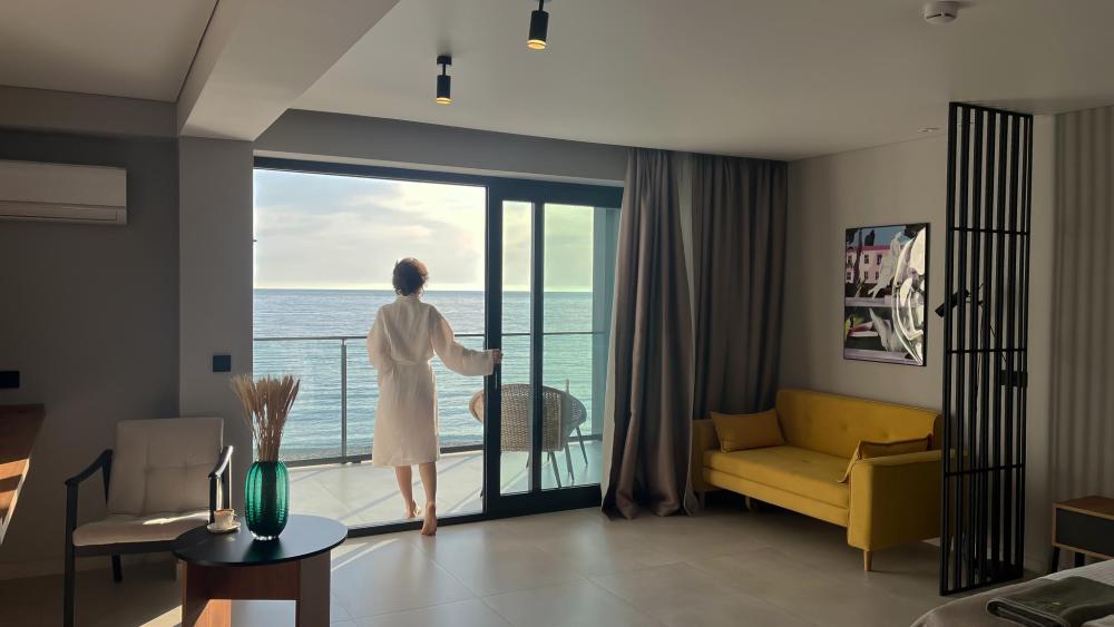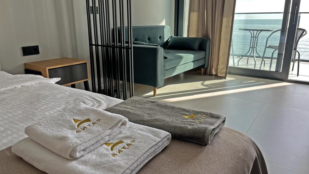 Современные 2-местные номера с полным оснащение для комфортного проживания на самом берегу моря. Площадь номера - 40 м2.