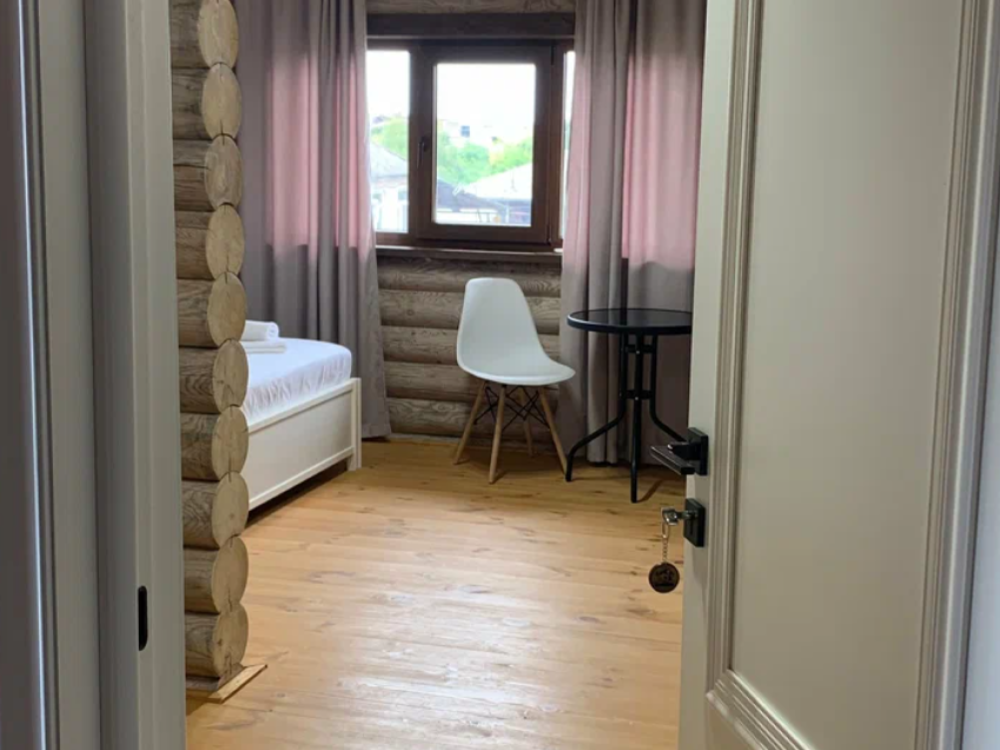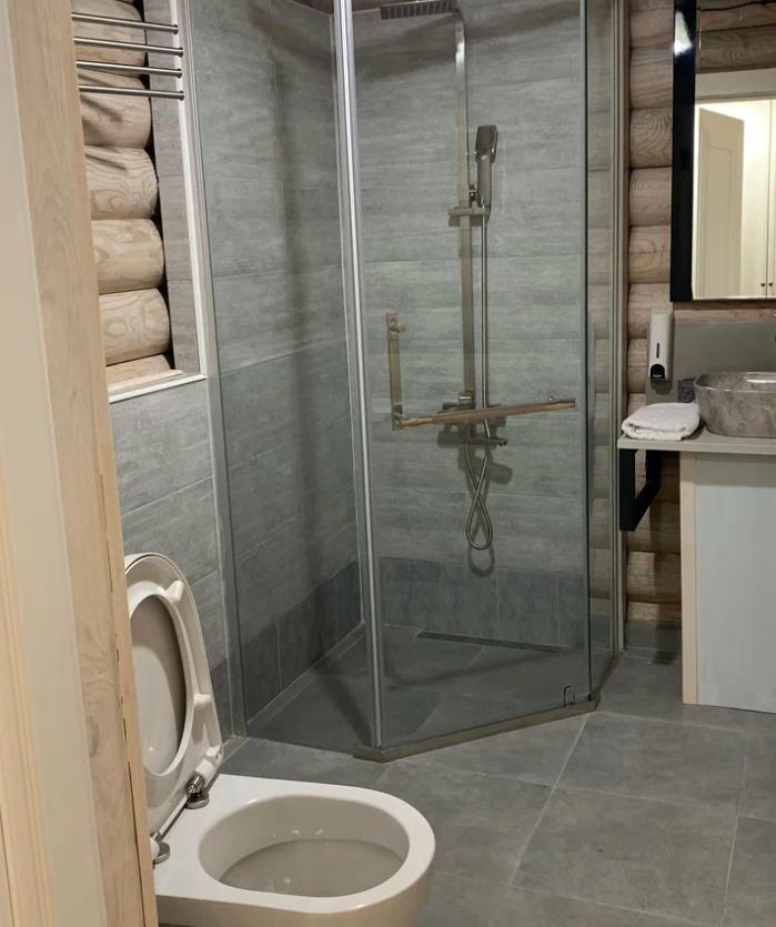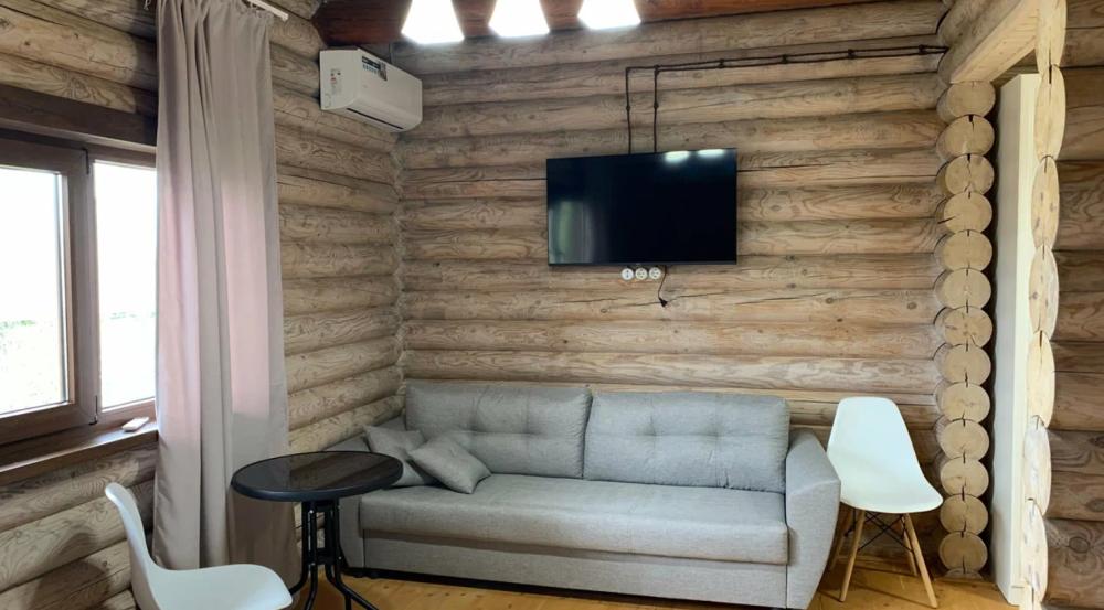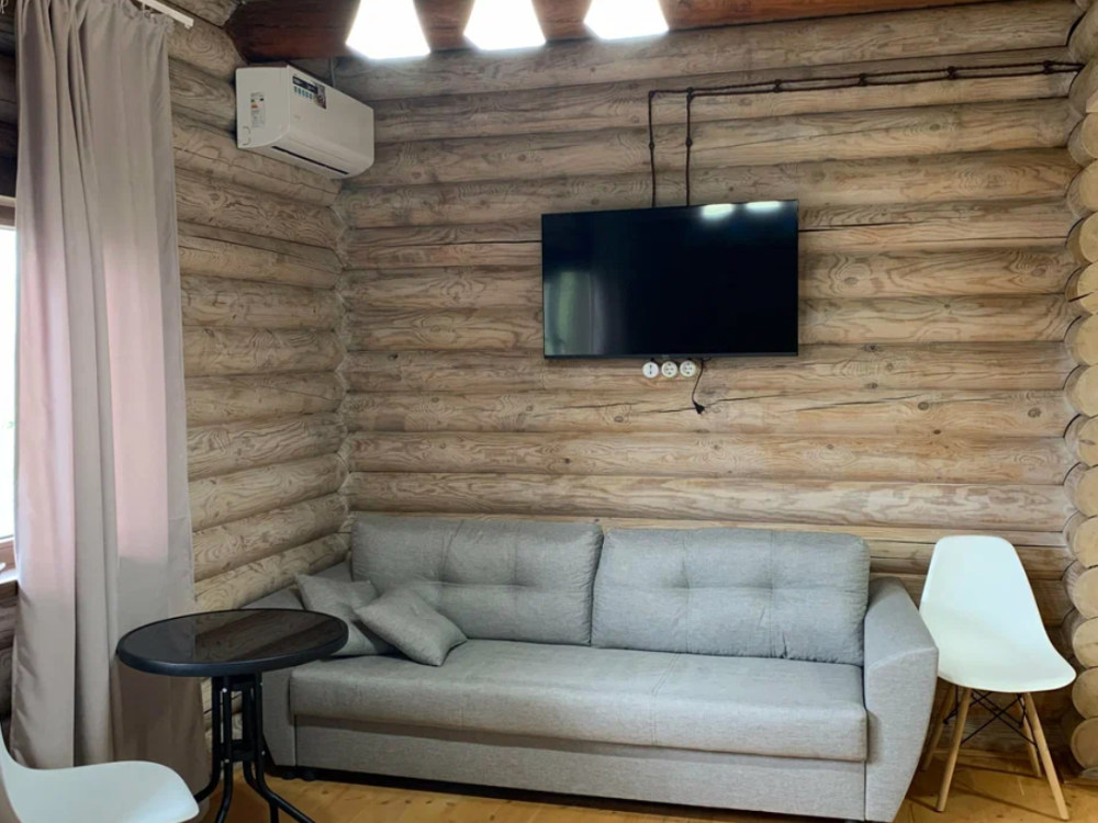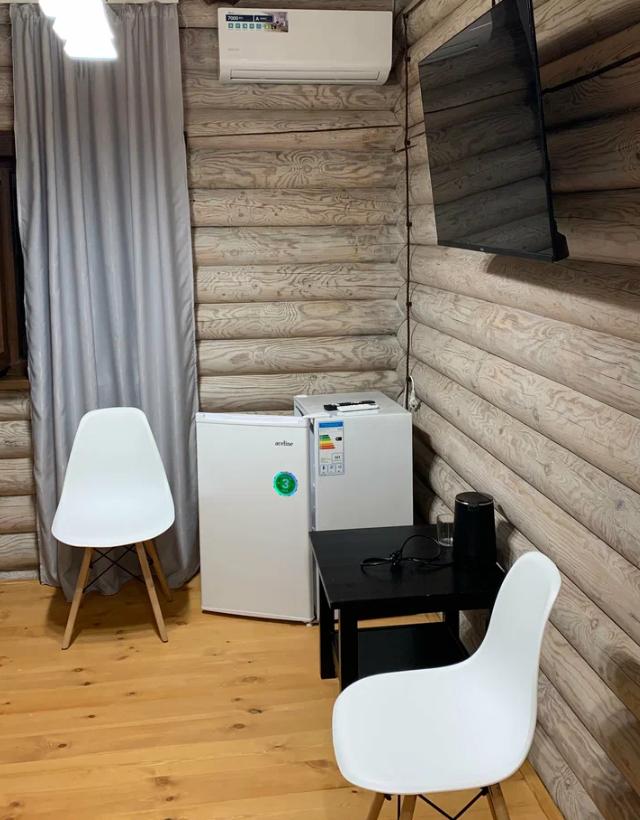 Стандартный трехместный номер с одной двуспальной кроватью и диваном. Номер оснащен мини-холодильником, кондиционером, обогревателем, телевизором. В номере есть утюг и чайник. В отдельной ванной комнате - душевая кабина, полотенца, фен.