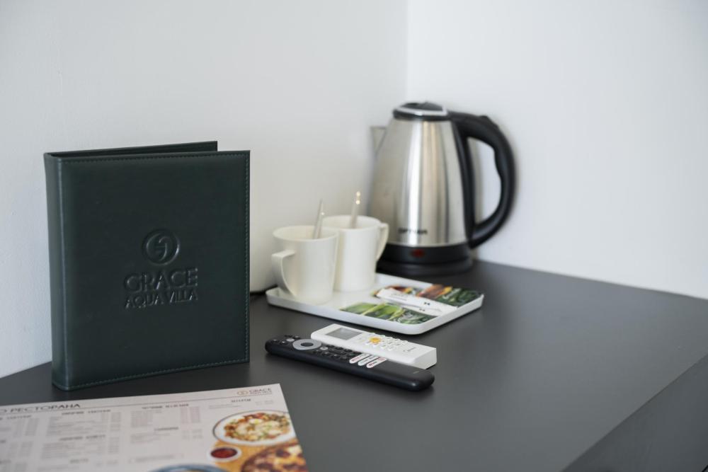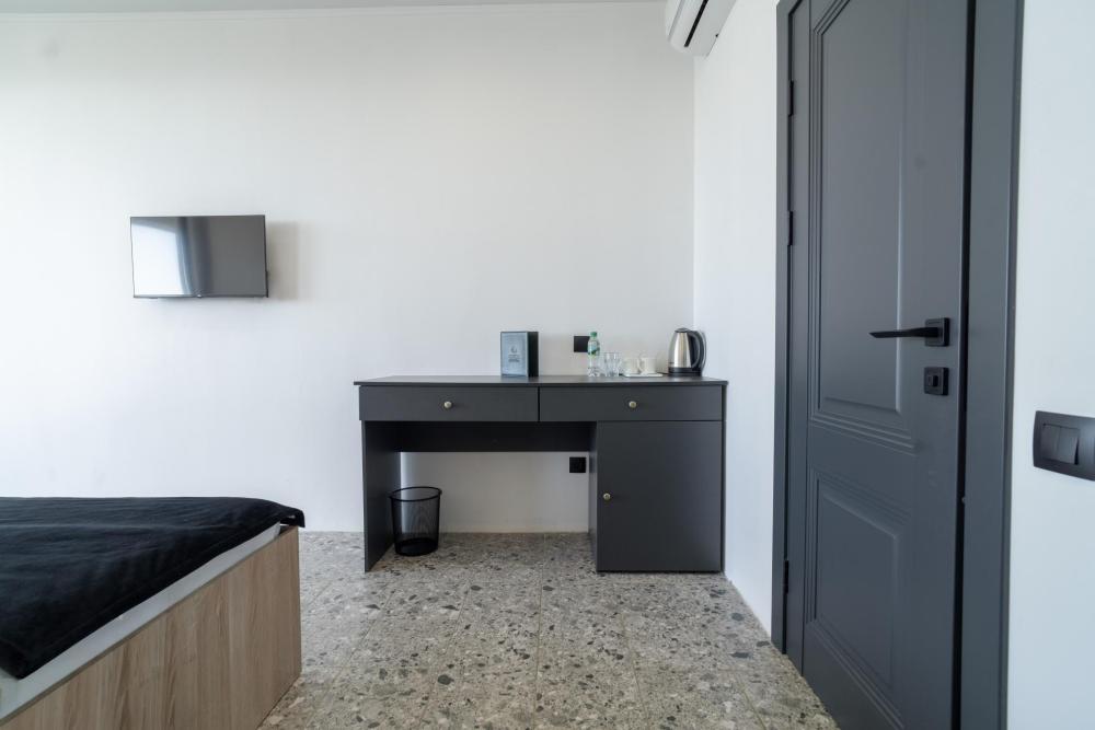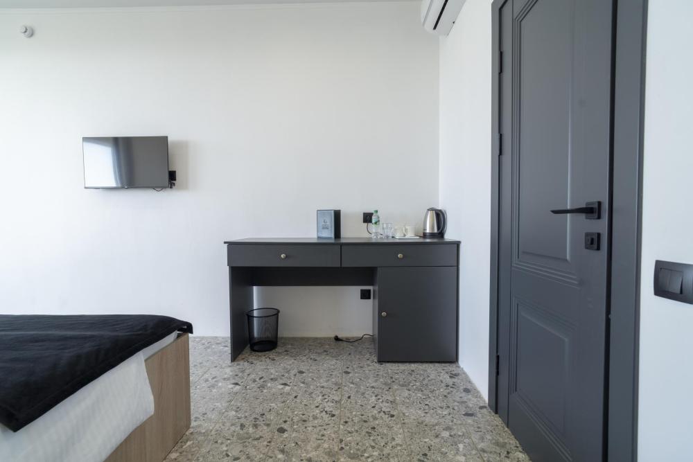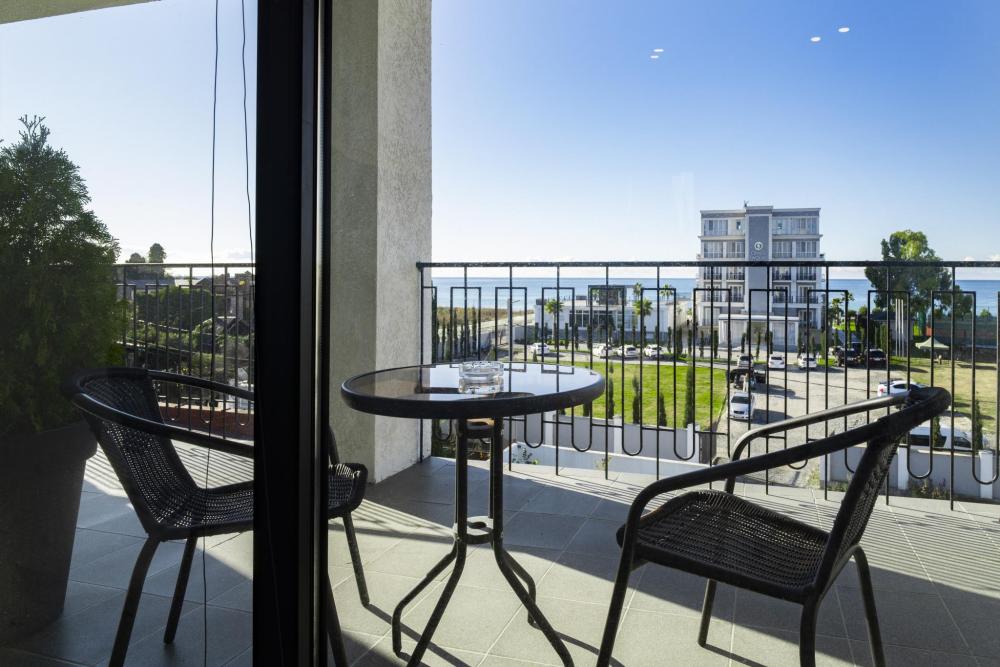 Роскошный номер с одной общей кроватью и с балконом. Максимальное количество гостей - 2 человека. Из номеров открывается вид на море и на город. В номере: одна двуспальная кровать или две раздельные, сплит-система, холодильник, телевизор, телефон, шкаф, сейф, письменный стол, мягкий стул, 2 кресла, настенное зеркало, чайный набор. В ванной комнате: раковина, унитаз, душ, гигиенические принадлежности. Проживание 1 ребенка до 4-х лет с родителями без места бесплатно.