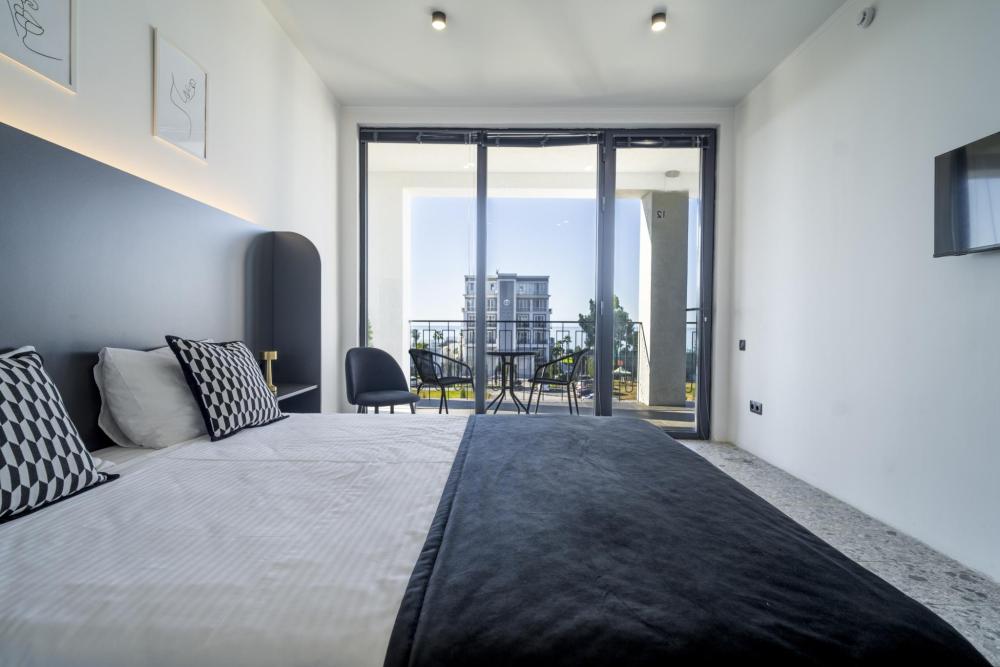 В двухместном номере класса "Люкс с балконом" есть все, чтобы почувствовать уют и комфорт. В апартаментах гостям гарантирован качественный и приятный отдых. Из номеров открывается вид на море и на город. Номер с одной общей кроватью. Предназначен для комфортного размещения 1-4 человек. Проживание одного ребенка до 4 лет бесплатно. В категории Люкс возможно размещение свыше 2 человек. Основные места – двуспальная кровать. Дополнительное место: диван-кровать до 2-х человек.