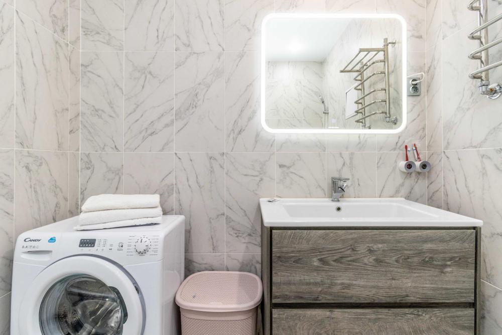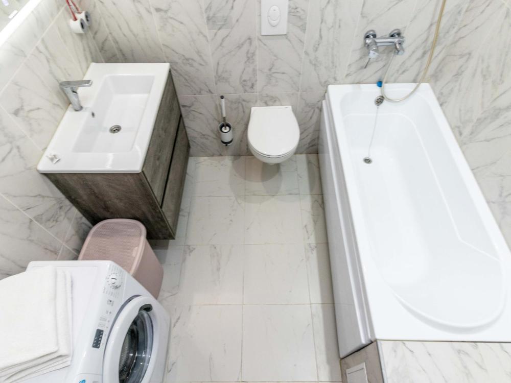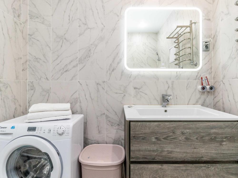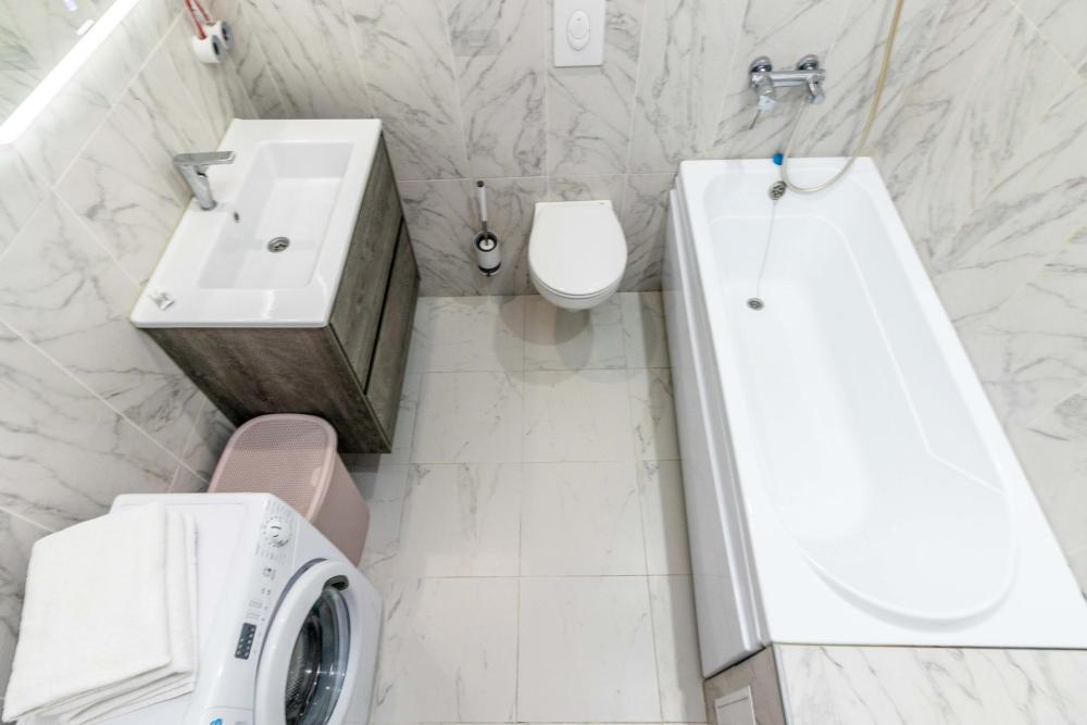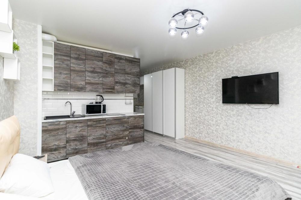 Просторные апартаменты студия с большой двуспальной кроватью. Всегда чистое постельное белье и полотенца. Кухня со всей необходимой техникой: холодильник, микроволновая печь, плита, чайник. Ванная комната с ванной и средствами личной гигиены. Телевизор, WI-FI. Стиральная машина, утюг, фен, сушилка для белья, гладильная доска.