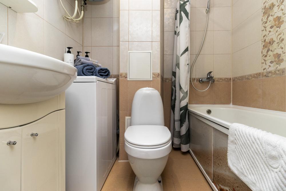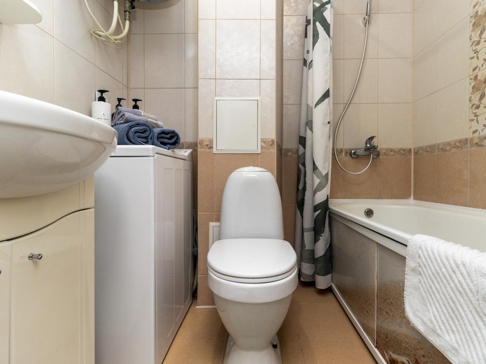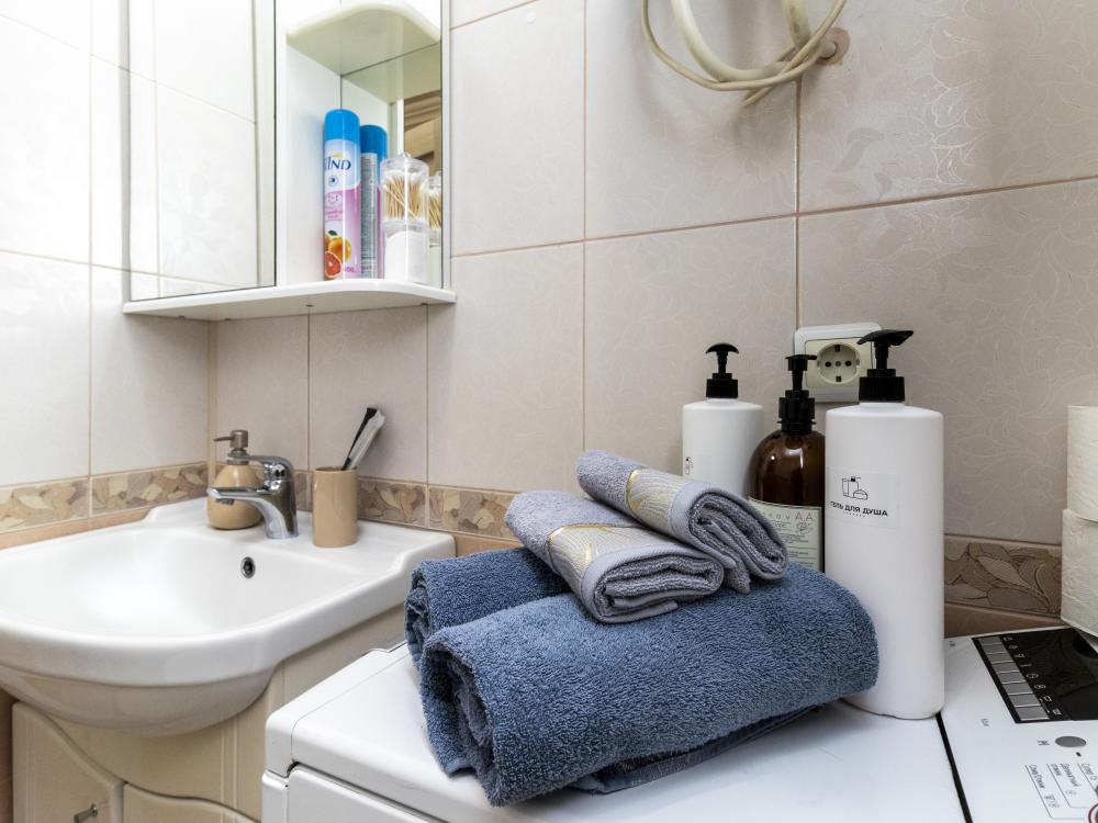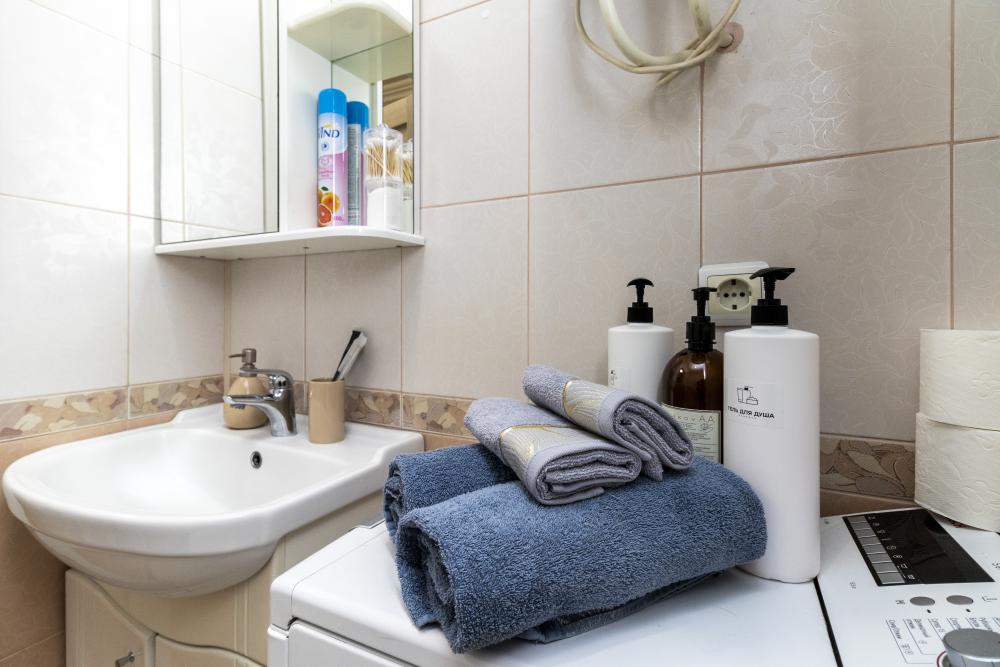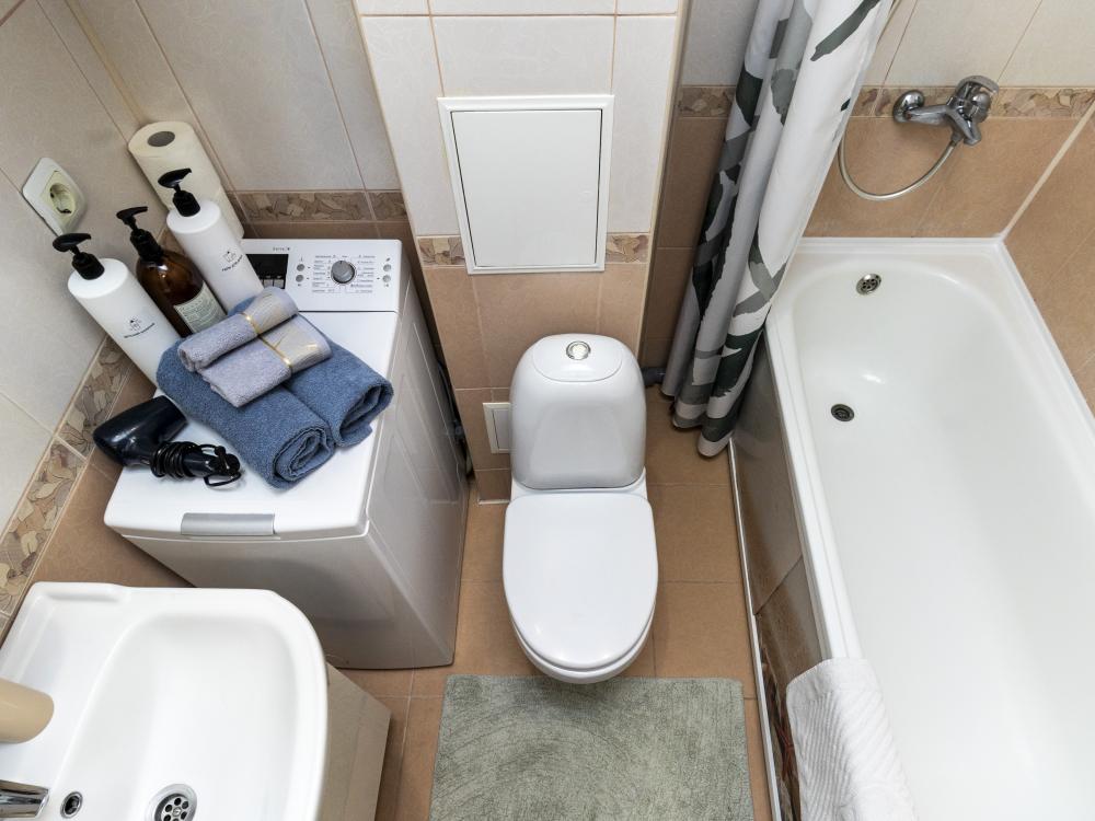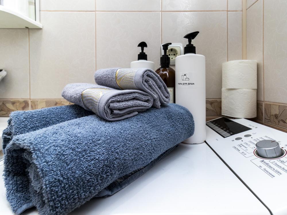 ✅ в ванной комнате всё продумано, как дома: ванна, стиральная машина, полотенца, гели для душа, шампунь, зубные щетки, фен, ватные диски/палочки и стиральный порошок;