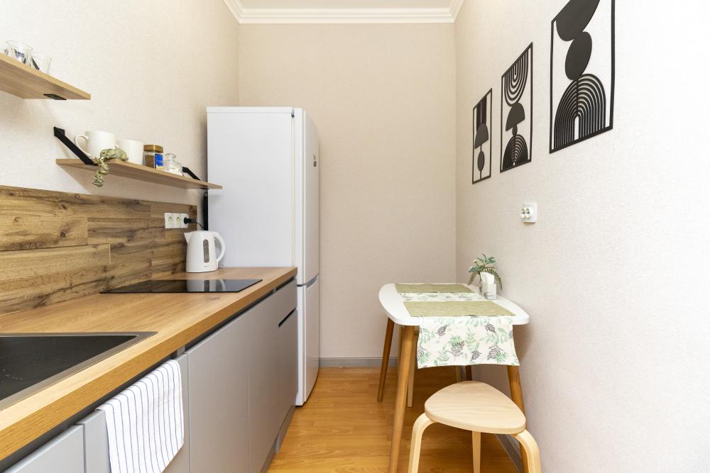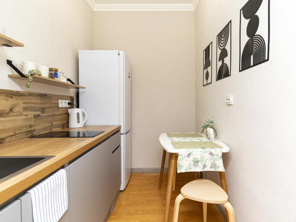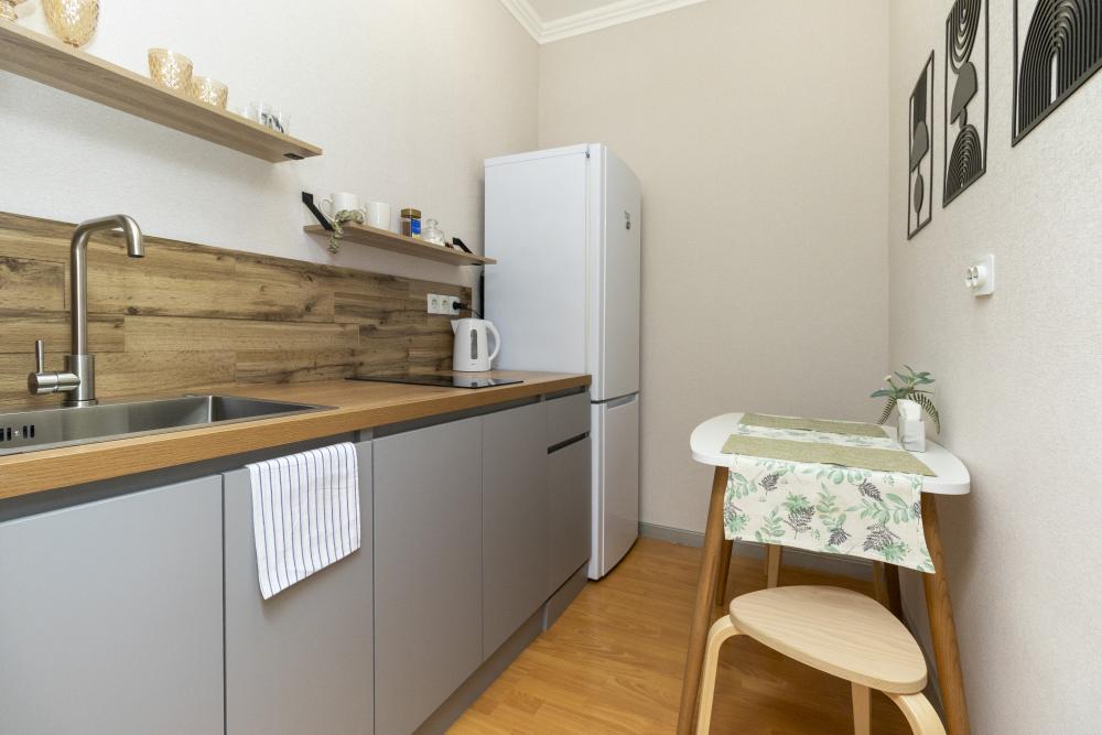✅ удобная кухня, где можно приготовить все, что захотите: есть двухкамерный холодильник, микроволновка , чайник, варочная панель, духовой шкаф, вытяжка; а также полный набор посуды для приготовления и сервировки стола;
