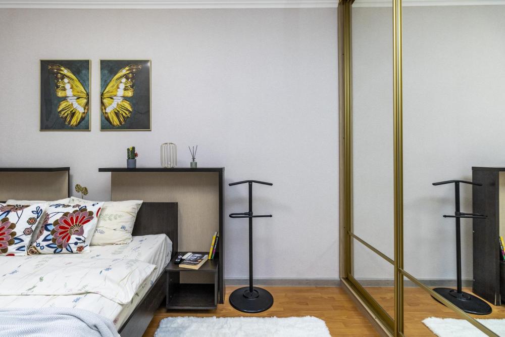 ✅ очень вместительный шкаф в прихожей и в спальне с плечиками для верхней одежды, рубашек, платьев и полками для остальных вещей;