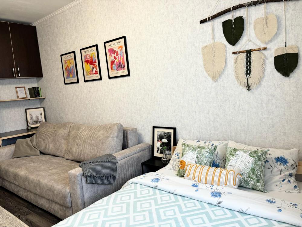 Однокомнатные апартаменты в развитом микрорайоне города Сургут. Для размещения до 3-х гостей. Для удобства гостей в апартаментах есть все необходимое для комфортного проживания: просторная кухня и лоджия с подогревом, queen-size диван с пружинным блоком, свежим постельным бельем, подушками, огромным легким одеялом, односпальный раскладной диван с отдельными постельными принадлежностями, 160 любимых телеканалов или smart TV на большом экране, двухкамерный холодильник, микроволновка, чайник, варочная панель, духовой шкаф, вытяжка, набор посуды для приготовления и сервировки стола, чай, кофе, сахар, соль/перец, растительное масло, ванна, стиральная машина, полотенца, гели для душа, шампунь, зубные щетки, фен, ватные диски/палочки и стиральный порошок, очень вместительный шкаф в прихожей и в спальне с плечиками для верхней одежды, рубашек, платьев и полками для остальных вещей.