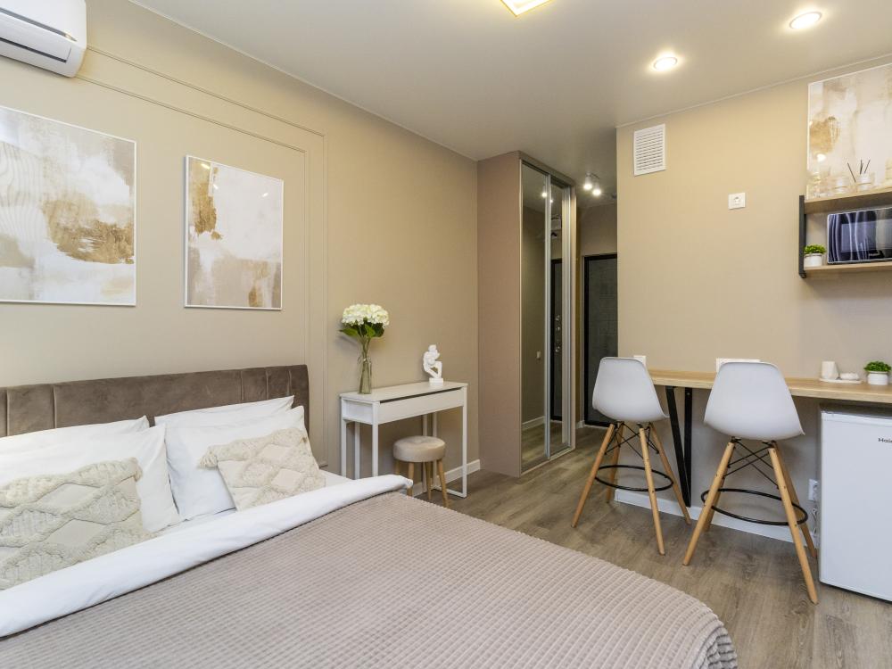 Идеальный вариант комфортного жилья без лишних затрат. Студия на 9 этаже с современным ремонтом и удобной планировкой. В квартире есть всё необходимое для комфортного проживания: холодильник, микроволновая печь, стиральная машина и кабельное/цифровое ТВ, индукционная переносная плита. Просторный диван рассчитана на двух человек, а также имеется рабочий стол и стул. Из окон открывается вид на улицу, что добавляет уюта и света. Ванная комната оборудована душевой кабиной и современной сантехникой. Для удобства гостей предусмотрены постельное белье и полотенца. Заселение бесконтактное. Курение и размещение с животными не допускаются, но можно с детьми. Парковка доступна на улице.