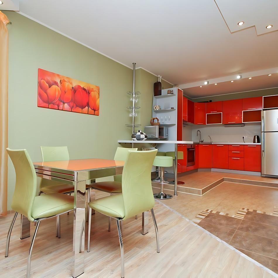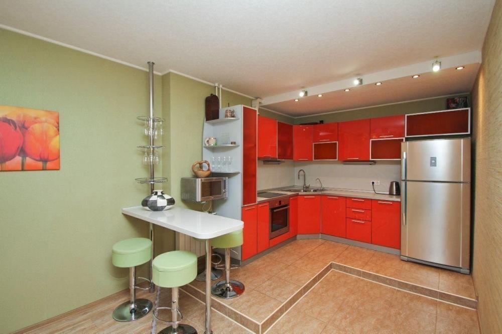 Однокомнатные апартаменты подойдут для размещения 5 человек. Спальные места: двуспальная кровать, 3 раскладных дивана. Имеется все необходимое для комфортного проживания: высокоскоростной Wi-Fi, цифровое TV с кабельными каналами, стиральная машина, фен, утюг. На кухне: плита, холодильник, чайник, СВЧ-печь, посуда и кухонные принадлежности. Санузел с ванной. Постельное белье, полотенца и средства личной гигиены предоставляются.