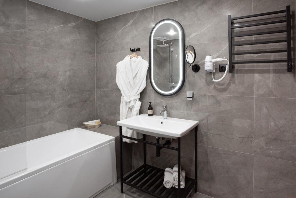 Однокомнатный номер рассчитан на 1 - 2 чел. В номере: TV со спутниковыми каналами, телефон, "зона отдыха" для гостей, двухспальная кровать, 2 тумбочки, 2 бра, стол, стул, зеркало, шкаф, туалет / душ / ванна, фен, халат / тапочки, аксессуары для одежды и обуви, кондиционер