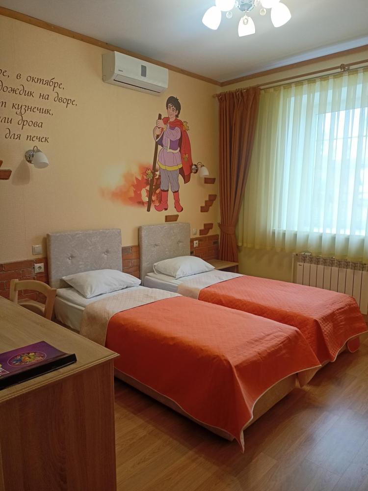 В комнате: две односпальные кровати с прикроватными тумбочками, телевизор, кондиционер, стол со стулом, вешалка, телефон. Санузел с душевой кабиной, унитаз с функцией биде, фен.