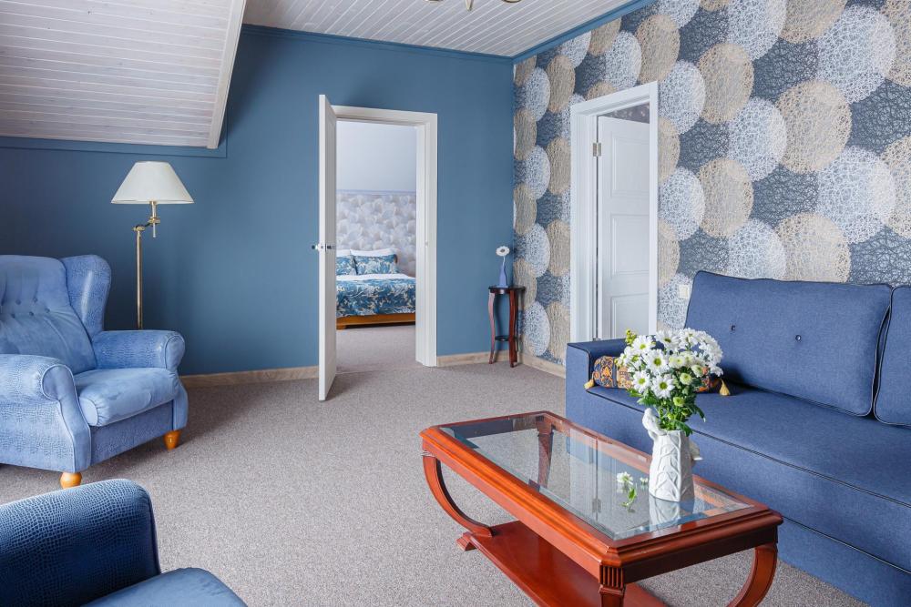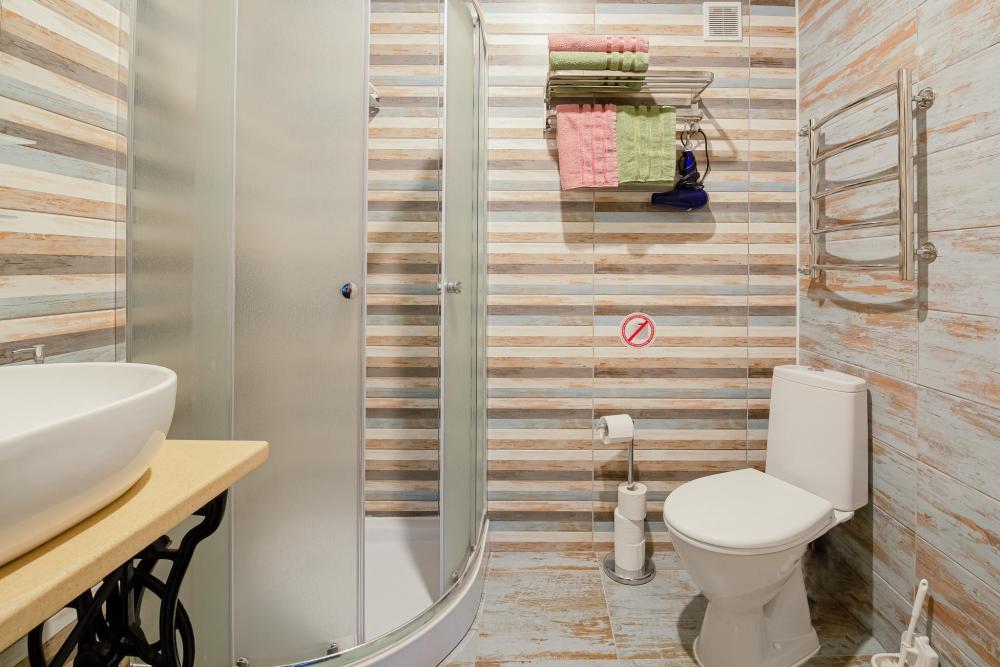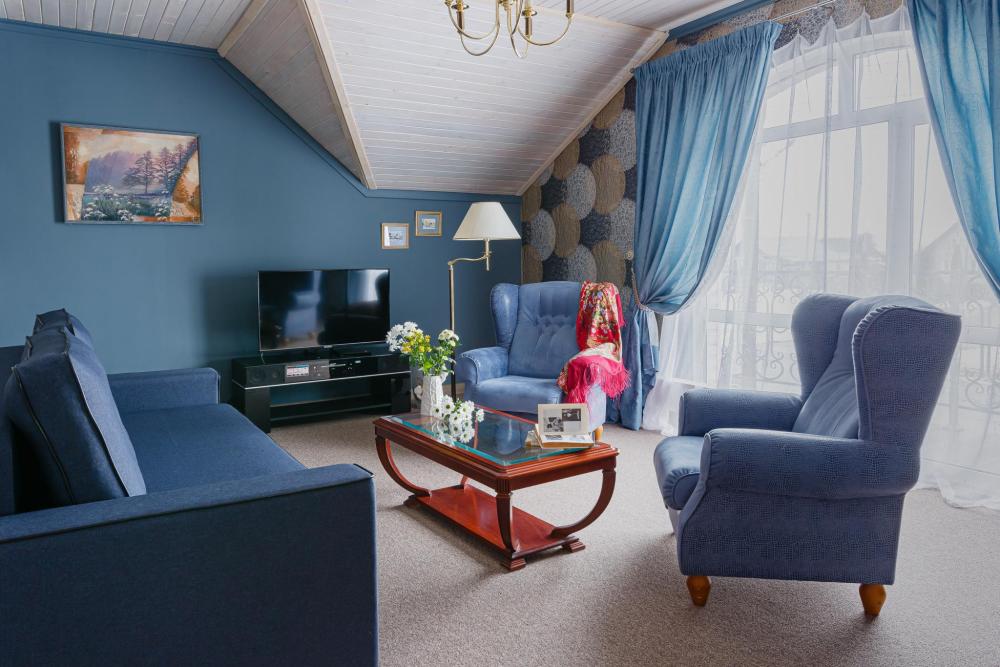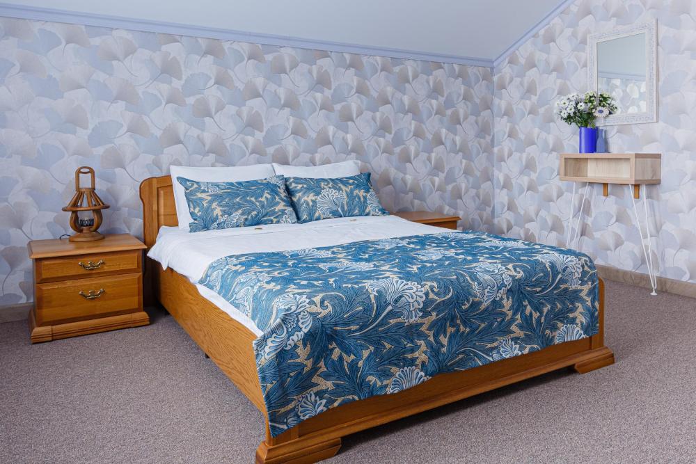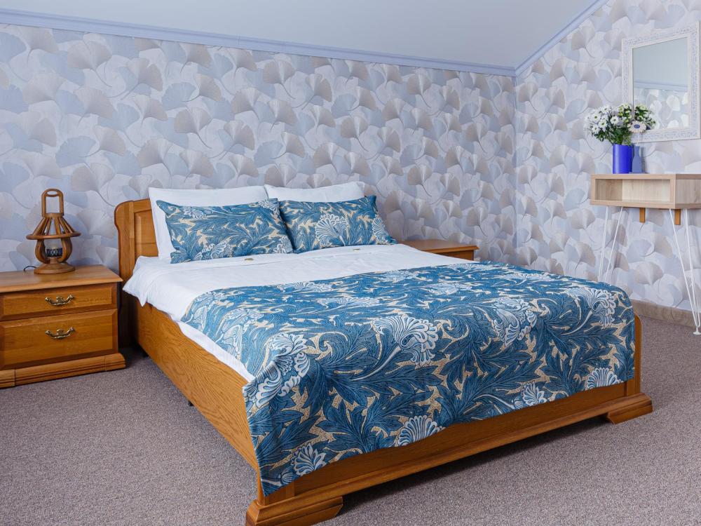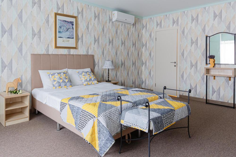 Просторная комната комфорт общей площадью 25 кв.м. для размещения до 2-х гостей. Оснащение: кровать двуспальная, шкаф для одежды, кресло и столик, прикроватные тумбы и туалетный столик с зеркалом, телевизор, кондиционер, ванная комната с душевой кабиной и набором полотенец (по три на каждого гостя), тапочки, Wi-Fi интернет.