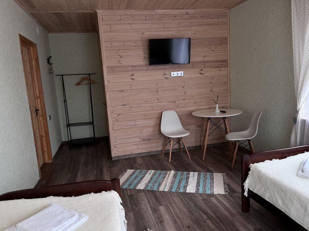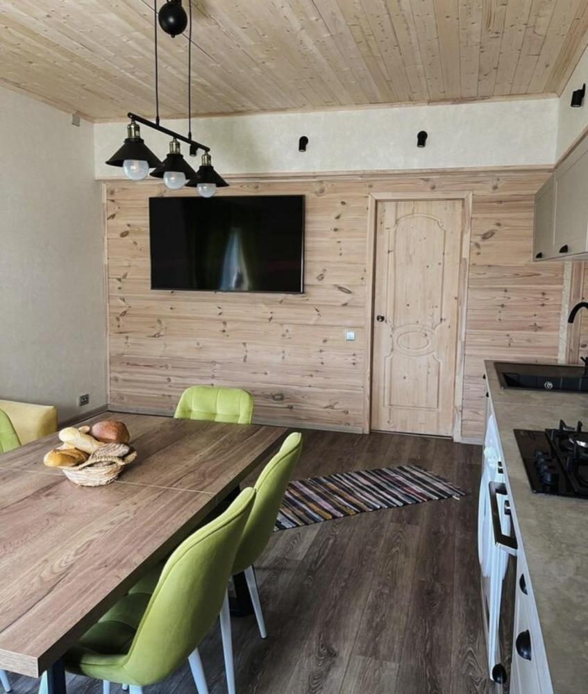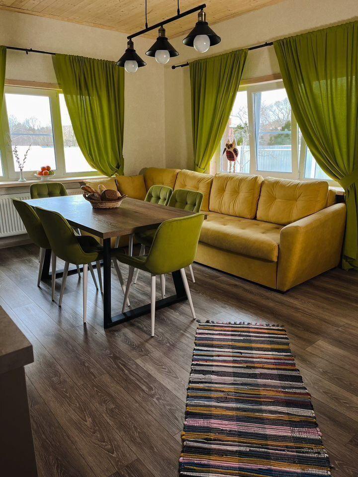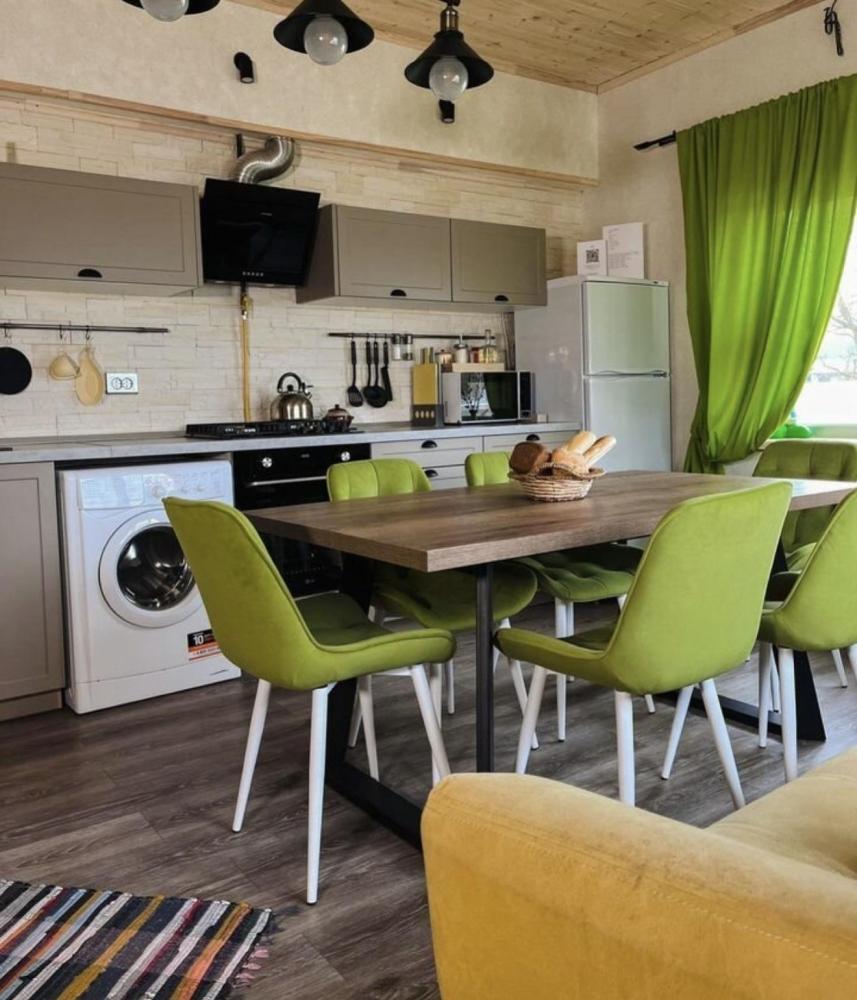 Коттедж общей площадью 131 кв.м. для размещения до 8-ми гостей. В доме имеется четыре спальни, две спальни с двухспальными кроватями и две с двумя односпальными кроватями с отдельными санузлами и душевой зоной, хорошая просторная общая кухонная зона оснащённая всем необходимым. Также для удобства гостей имеется стиральная машинка, гладильная доска, утюг, фен. Во дворе располагается летняя беседка с мангальной зоной.