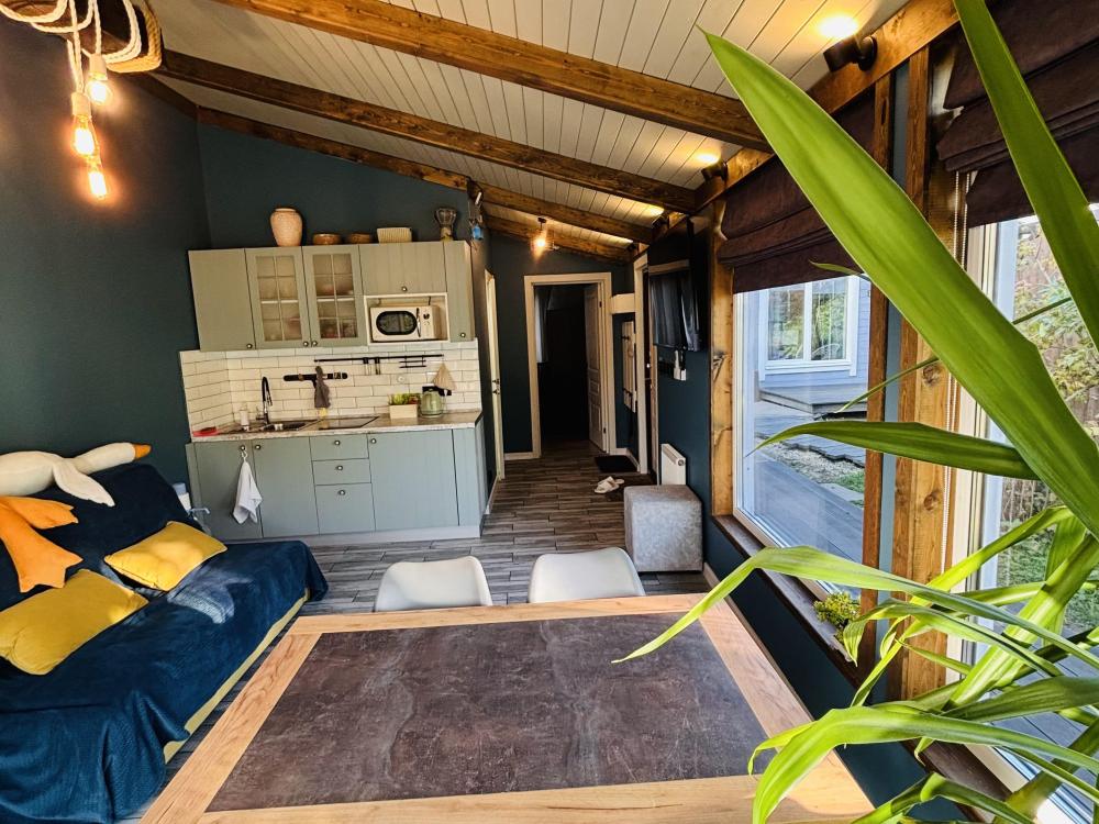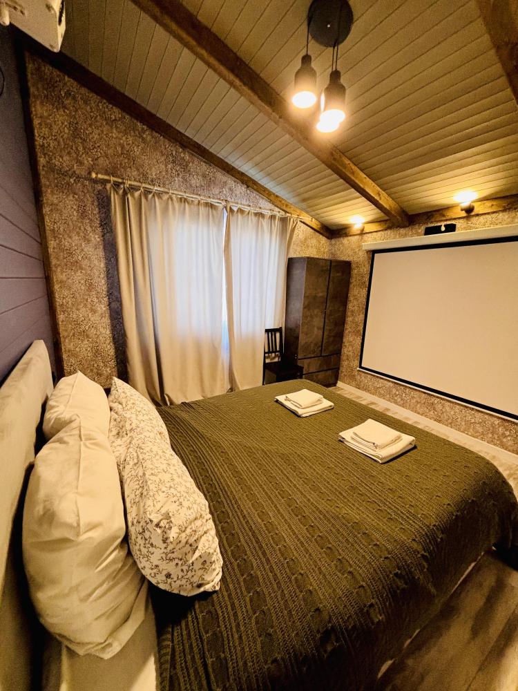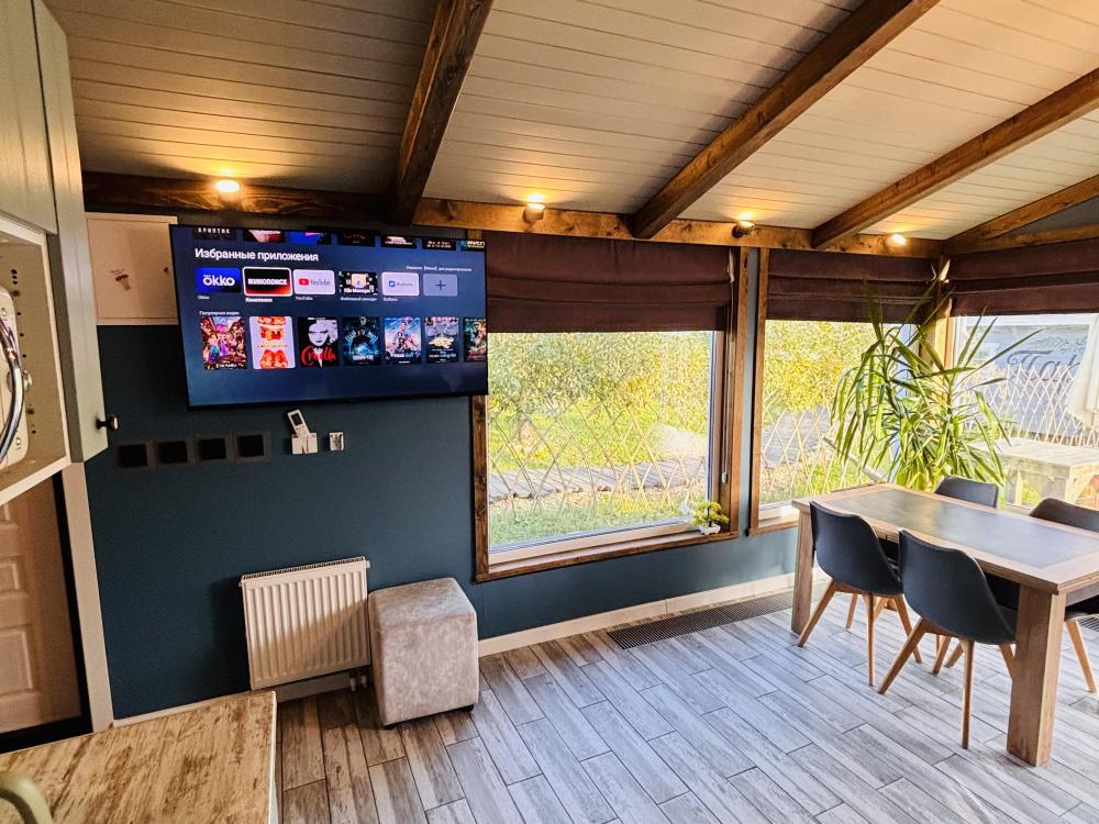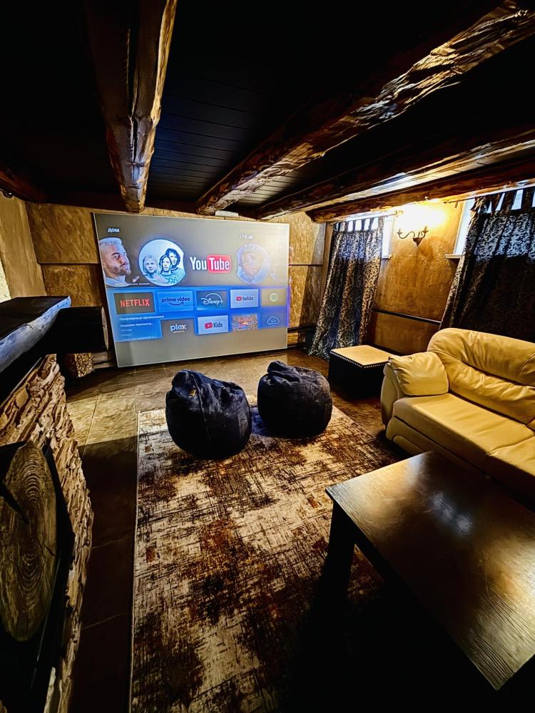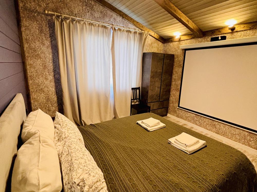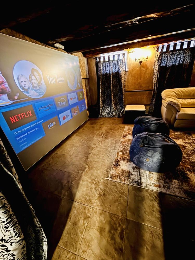 В доме: кухня-гостиная с диваном и панорамными окнами, из которых открывается вид на вал с одной стороны и на Рождественский собор с другой, спальня с проектором для комфортного отдыха, совмещенный санузел. Так же есть веранда для уютных летних вечеров. Есть Wi-fi.