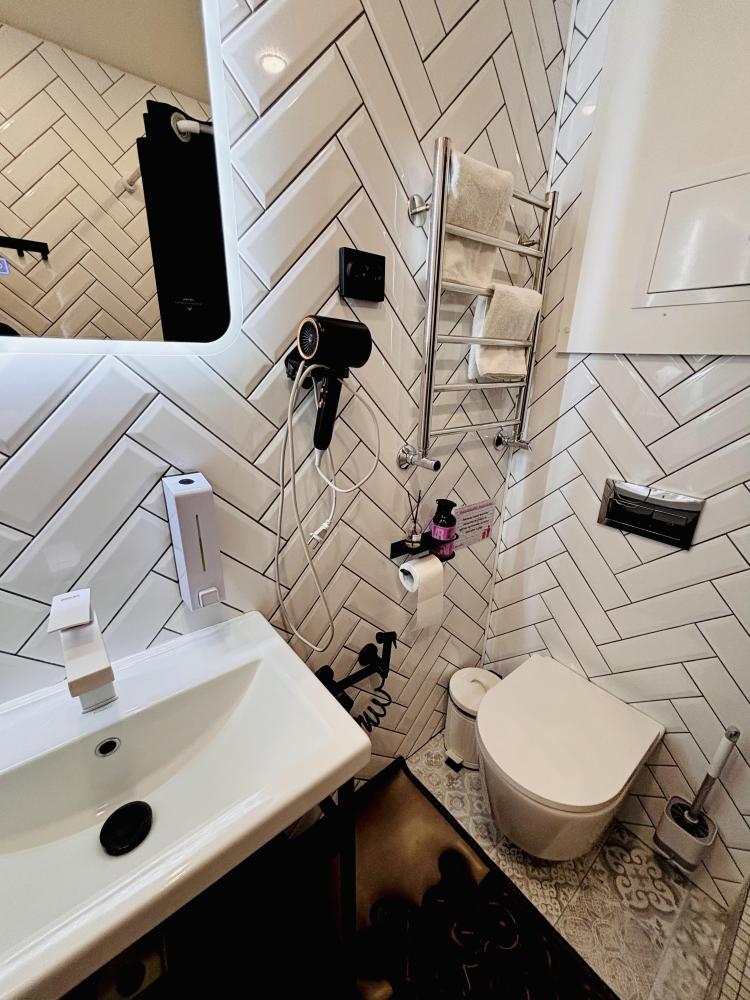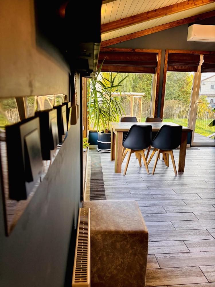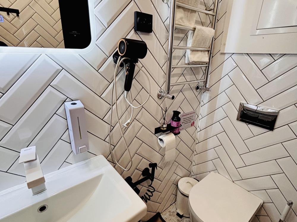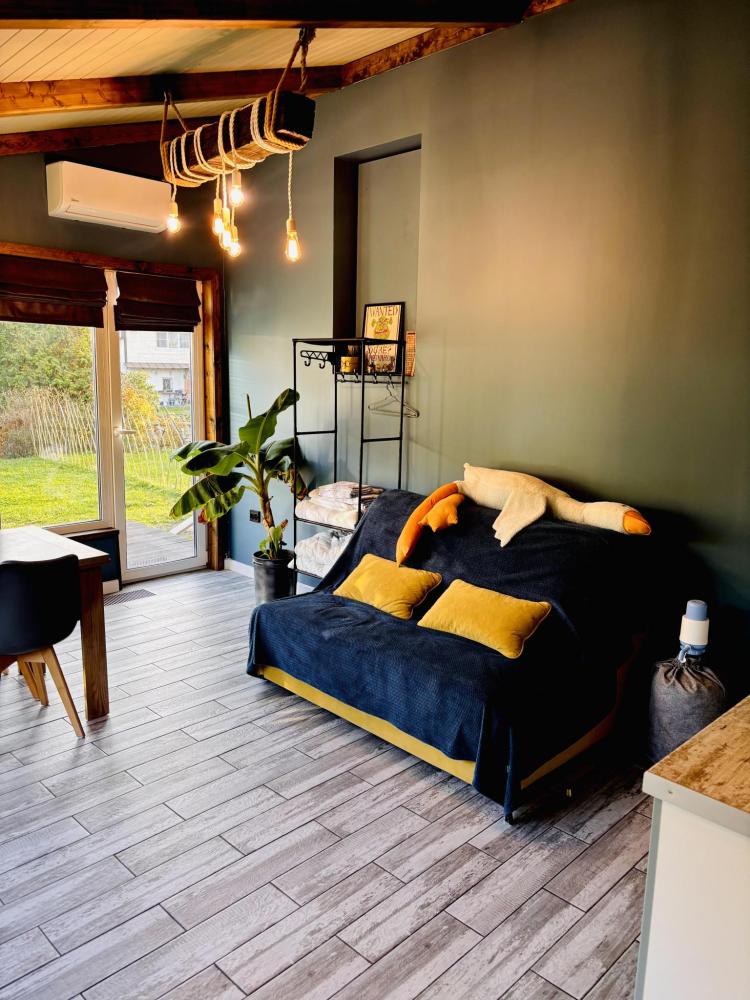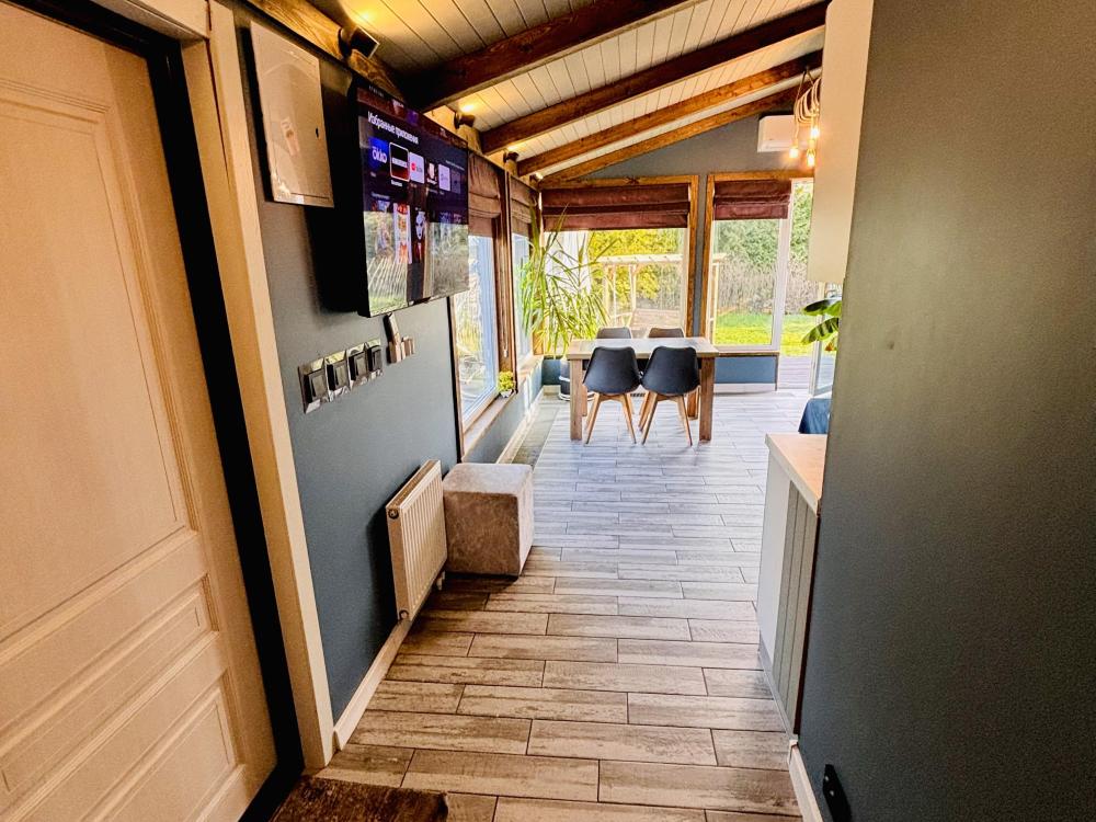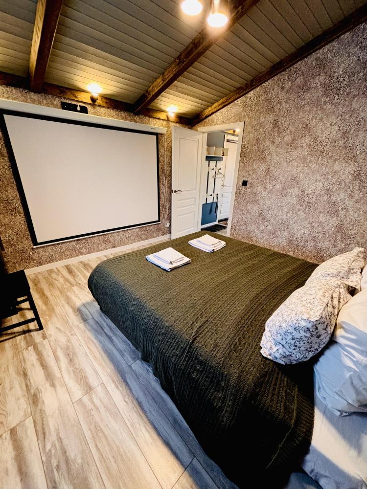 В доме: кухня-гостиная с диваном и панорамными окнами, из которых открывается вид на вал с одной стороны и на Рождественский собор с другой, спальня с проектором для комфортного отдыха, совмещенный санузел. Так же есть веранда для уютных летних вечеров. Есть Wi-fi.