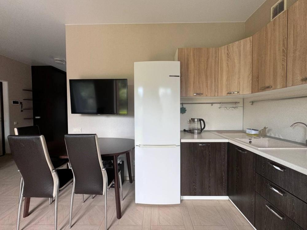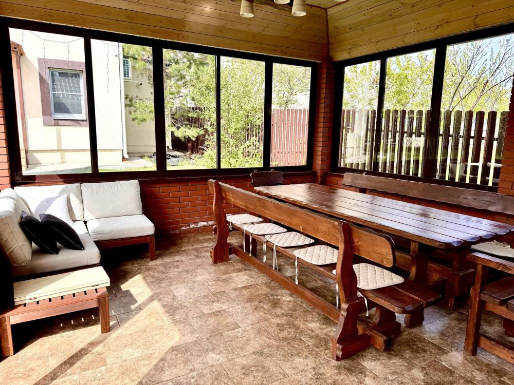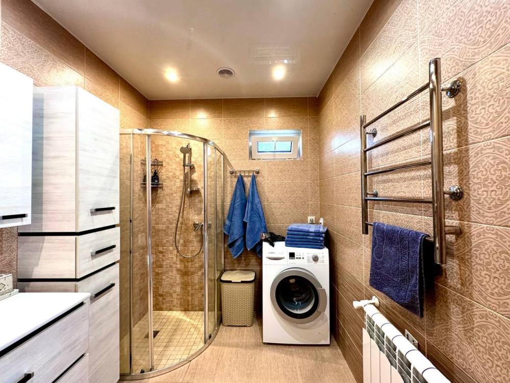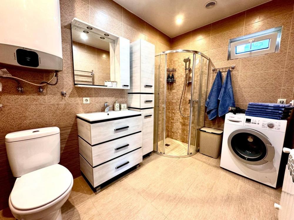 В доме две отдельные спальни с большими и мягкими кроватями. Просторная кухня-гостиная с раскладным диваном и всей необходимой техникой и посудой. Санузел оборудован душевой кабиной, гигиенические принадлежности и полотенца предоставляются. Так же для гостей предоставляются : фен, утюг, пылесос, сушилку для белья, стиральную машину, посуда, соль, сахар, специи, масло растительное, кофе, чай. На территории дома есть большая, современная, застекленная беседка с большим столом и всеми удобствами. Решётку и шампуры предоставляются