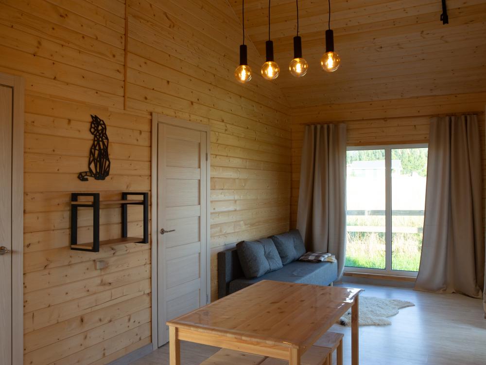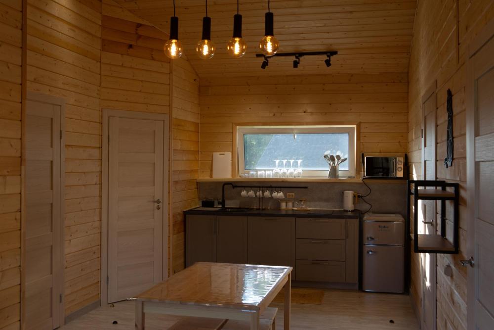 На территории есть: удобная парковка; специальное место для хранения лыж и сноубордов; бесплатный Wi‑Fi, доступный на всей территории. Дома оснащены полностью оборудованной кухней: плита; посудомоечная машина; микроволновая печь; холодильник; необходимая посуда; чайник. Также у дома : расслабляющая баня с релакс‑зоной; детская площадка для маленьких гостей; оборудованная площадка для пикника; водные прогулки и катание на лодках; рыбалка; игры в волейбол и бадминтон; настольные игры для душевных вечеров.