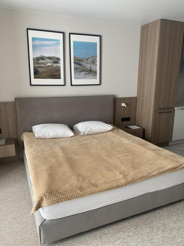 Уютные, новейшие двухкомнатные апартаменты в жемчужине Калининградского побережья- городе Светлогорск ждут гостей! Вас встретит администратор в холле, который работает 24/7. Апартаменты подходят для отдыха пяти гостей. В пешей доступности озеро Тихое. Вокруг озера можно гулять с коляской или кататься на велосипеде. Рядом сосновый бор, веревочный городок. До променада и моря 10-15 минут пешком.До Янтарь-холла можно дойти за 15-20 минут. Большая кровать с удобным матрасом примет Вас в свои объятия после долгого продуктивного дня! Раскладной диван с прямым удобным спальным местом послужит Вам как полноценная двуспальная кровать. А кресло-кровать позволяет комфортно разместиться еще одному гостю.Постельное белье и полотенца меняются каждые 3 дня. Стабильный интернет и удобный стол позволят поработать в тишине тем, кто приехал не только отдохнуть. Кухня оборудована всей необходимой техникой: вместительный холодильник, чайник, индукционная плита, микроволновая печь. Имеется полный комплект посуды: тарелки, стаканы, бокалы, чашки, кастрюли, штопор и тд! Есть кондиционер.Шторы блэк-аут не дадут вам проснуться раньше, чем вы сами захотите! Для комфортного летнего отдыха на окна установлены москитные сетки. Установлена система очистки воды, что позволяет использовать водопроводную воду для питья и приготовления пищи. В ванной комнате есть все необходимые принадлежности: гель, шампунь, мыло, зубной набор, тапочки, полотенца, гигиенический душ, фен. Халаты предоставляются по предварительному запросу бесплатно. Территория комплекса апартаментов закрыта и находится под круглосуточным видеонаблюдением, есть своя детская площадка. Крыша оборудована для комфортного отдыха и принятия солнечных ванн. Есть шезлонги, душ, зонты от солнца. Имеется собственная прачечная, в которой за отдельную плату можно постирать личные вещи. Можно взять в прокат велосипеды и прокатиться по чудесной велодорожке до ближайших городов вдоль моря, даже до Куршской косы!