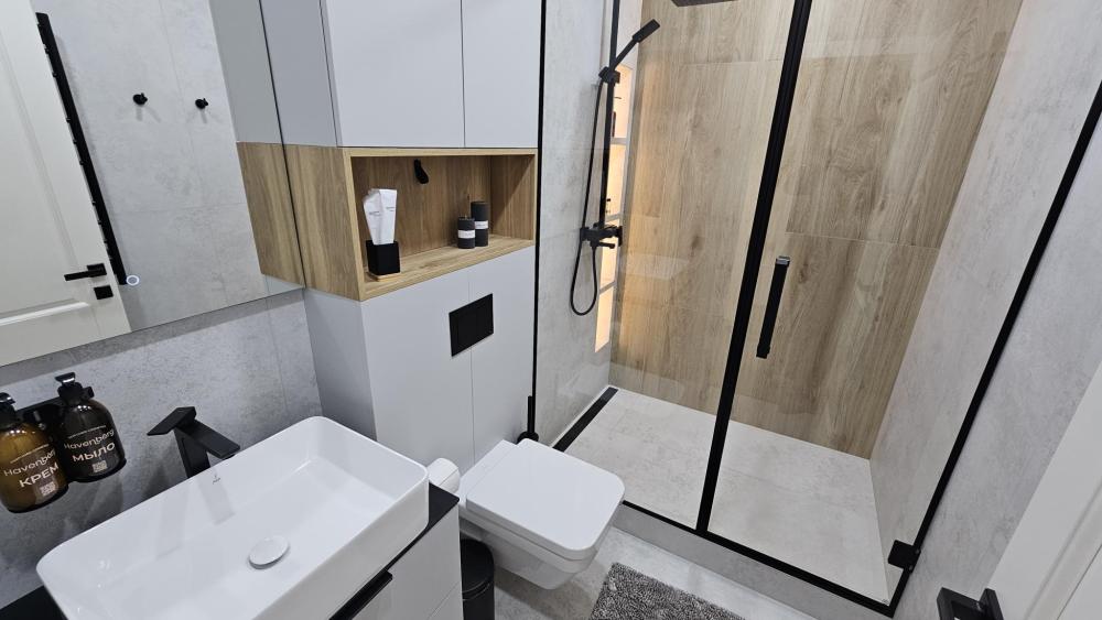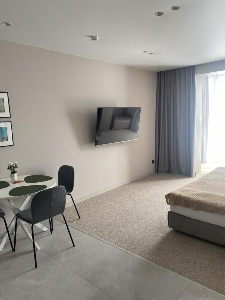 Апартаменты “Зелёный лес” — пространство, где забота о комфорте, здоровье и эстетике стала основой каждой детали. Интерьер выполнен в стиле эко-минимализм с использованием натуральных материалов и спокойных природных оттенков. Здесь легко дышится, спокойно думается и по-настоящему отдыхается. Пространство: •Просторная гардеробная — удобно разместите весь багаж и одежду. •Функциональная кухня оснащена премиальной техникой (в том числе духовкой Hyberg) — идеально для тех, кто хочет питаться правильно даже в отпуске. •Уютная обеденная зона с круглым столом и видом на парковые тропинки — идеально для неспешных завтраков или душевных ужинов. Спальное место: Комфортный сон — залог хорошего отдыха. Континентальная кровать с ортопедическим матрасом из натуральных материалов и пены Lavander подарит глубокий расслабляющий сон, а пена Aloe Vera дополнительно поддержит тело и обеспечит эффект мягкой детоксикации. Нежное постельное бельё и полотенца пастельных оттенков создают атмосферу уюта и гармонии. Для работы и отдыха: Если нужно поработать — к вашим услугам рабочее место с удобным креслом и письменным столом. Также предоставлены принадлежности для пляжа — вам не нужно брать их с собой. Всё пространство продумано до мелочей, с любовью и вниманием к деталям. Вам захочется возвращаться сюда снова и снова.