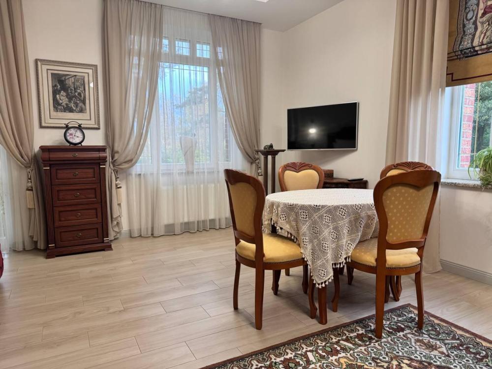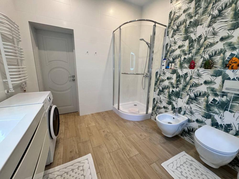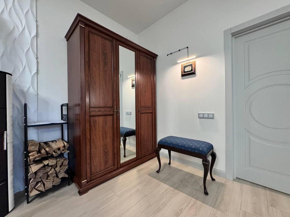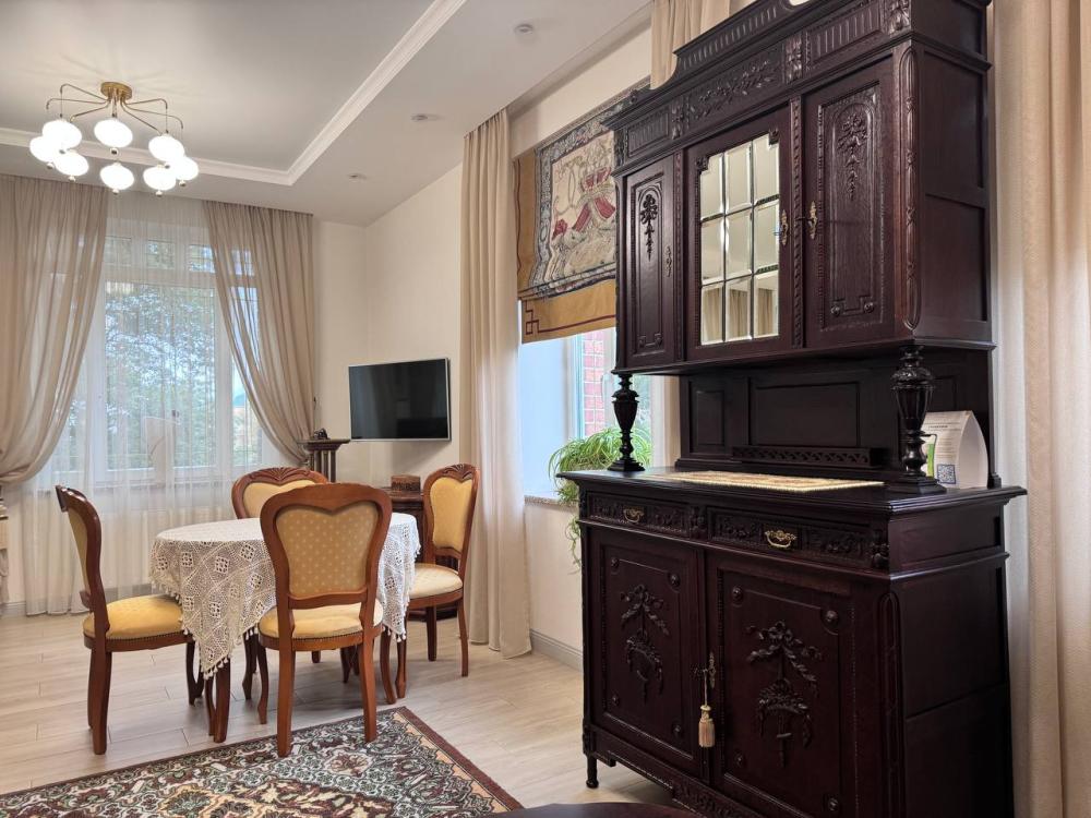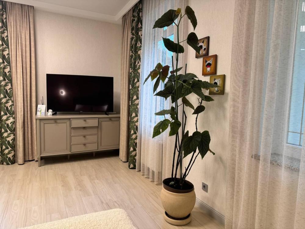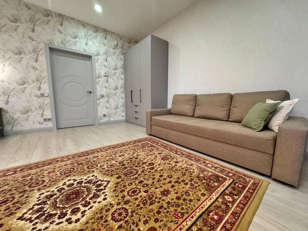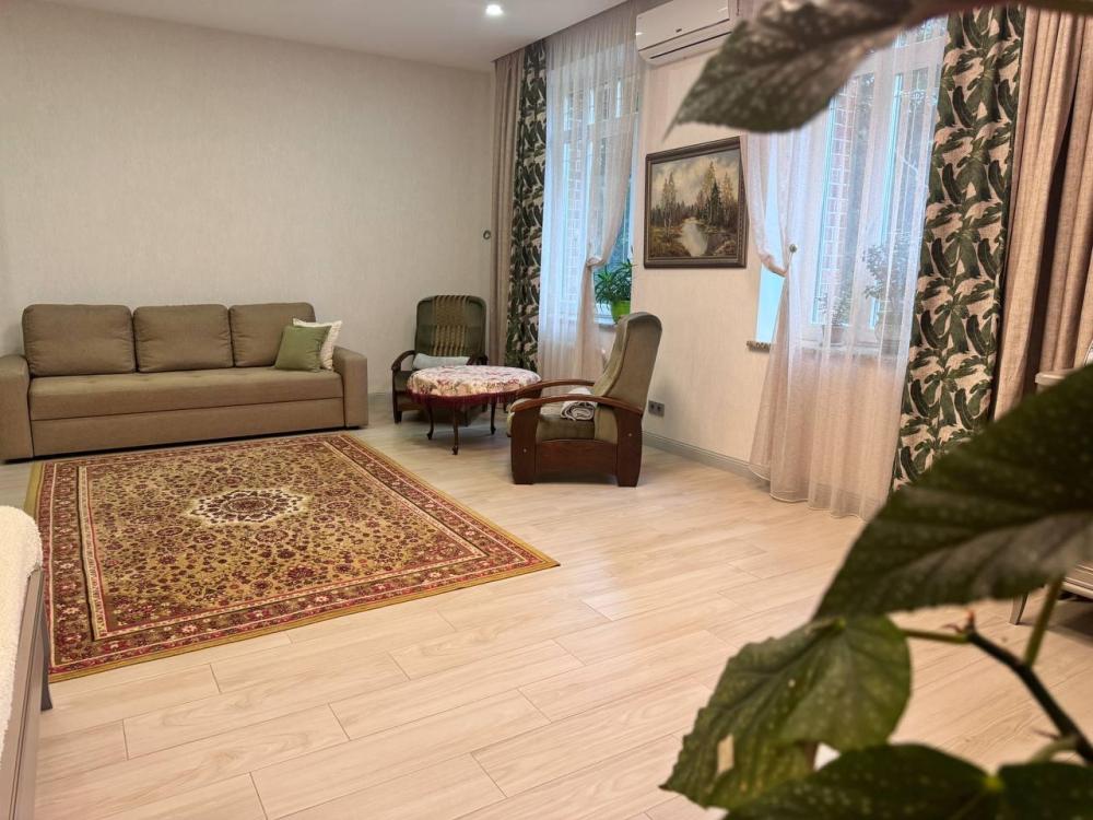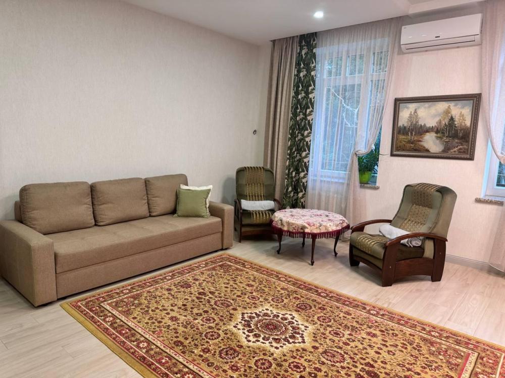 Площадь – 57 кв.м. В квартире комфортно могут разместиться до 4-х человек. Спальные места распределены следующим образом: Спальня-гостиная: двуспальная кровать (180х200 см) и раскладной диван как дополнительное место (160х190). Возможно предоставление дополнительной односпальной кровати (100х200). Оборудование и техника: Безлимитный скоростной Wi-Fi, телевизор, стиральная машина, сушилка для белья, фен, утюг, индивидуальное отопление. Кухня полностью оборудована техникой и посудой для приготовления пищи: индукционная плита, СВЧ-печь, холодильник, столовые приборы и посуда для приготовления пищи. Для комфортного пребывания гостей: Все спальные места застелены белоснежным бельём отельного уровня. В летний период предоставляются пляжные полотенца. Предоставляются махровые полотенца (банное полотенце, полотенце для рук, полотенце для ног). Предоставляется одноразовая отельная выкладка(одноразовые тапочки, зубной набор (щетка и зубная паста), шампунь, гель для душа, одноразовое мыло.
