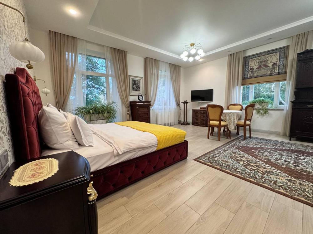В квартире комфортно могут разместиться до 3-х человек. Спальные места распределены следующим образом: Спальня-гостиная: двуспальная кровать (200х200 см) и дополнительная кровать по запросу (100х200) Оборудование и техника: Безлимитный скоростной Wi-Fi, телевизор, стиральная машина, сушилка для белья, фен, утюг, индивидуальное отопление. Кухня полностью оборудована техникой и посудой для приготовления пищи: индукционная плита, СВЧ-печь, холодильник, столовые приборы и посуда для приготовления пищи. Для комфортного пребывания гостей: Все спальные места застелены белоснежным бельём отельного уровня. В летний период предоставляются пляжные полотенца. Предоставляются махровые полотенца (банное полотенце, полотенце для рук, полотенце для ног). Предоставляется одноразовая отельная выкладка(одноразовые тапочки, зубной набор (щетка и зубная паста), шампунь, гель для душа, одноразовое мыло.