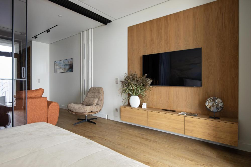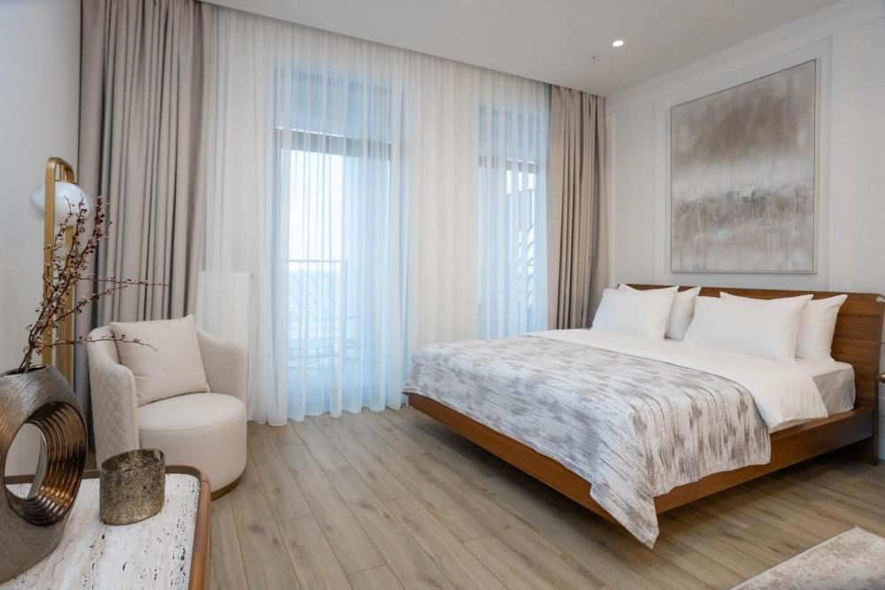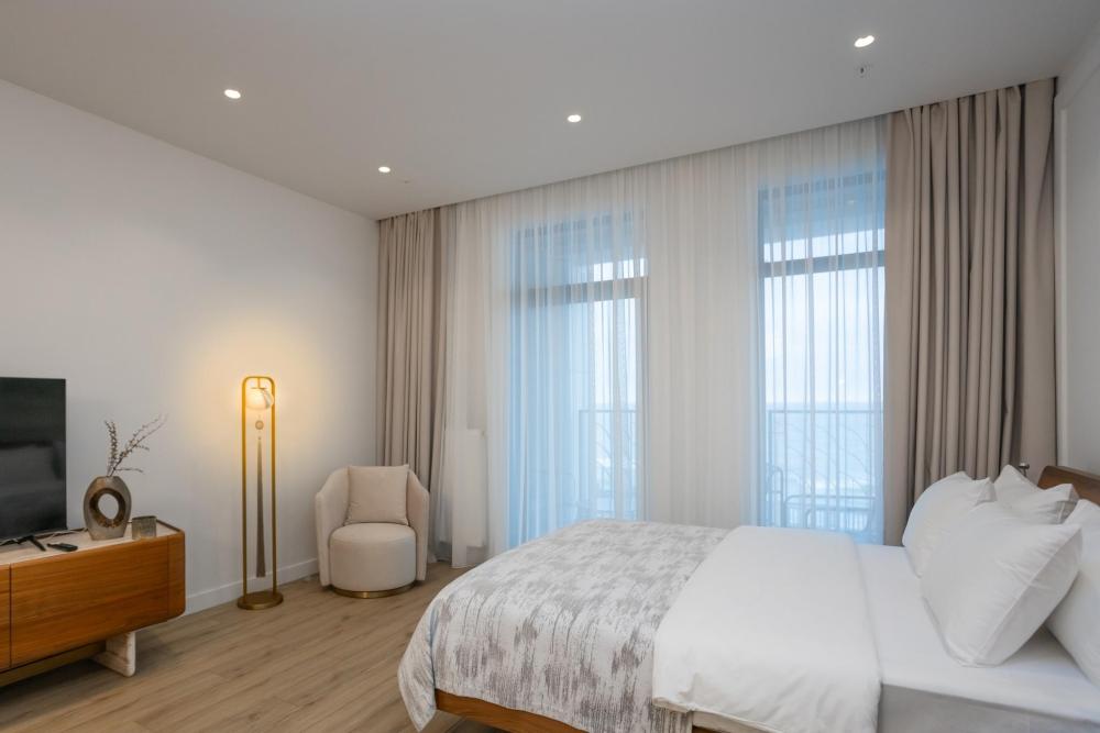 Etera — уют и дизайн у самого моря. Добро пожаловать в Etera — современное пространство, где каждая деталь продумана для вашего отдыха. Апартаменты расположены на первой линии у моря: из окон и балкона открывается спокойный панорамный вид, создающий атмосферу уединения и гармонии. Дизайн выполнен в мягких природных тонах с элементами дерева и стекла. Пространство объединяет гостиную, кухню и спальню, при этом сохраняет чувство лёгкости и уюта. Тёплый свет, текстуры натуральных материалов и продуманное зонирование создают особое ощущение дома. Зона отдыха отделена прозрачной перегородкой с плотными шторами. Большая кровать с мягким изголовьем и качественным бельём подарит полноценный отдых. Уютная обеденная зона, кофемашина, чайник и всё необходимое для приготовления еды. Удобный диван и Smart TV создают атмосферу для неспешных вечеров. Ванная комната оформлена в лаконичном стиле: каменная отделка, вместительное зеркало, стиральная машина, всё необходимое для ухода и комфорта. Лоджия. Два мягких кресла и столик — идеальное место для чашки кофе и созерцания моря, в любое время суток. Первая линия, панорамный вид на море. Тихий район с кафе и магазинами поблизости. Etera — место, где стиль встречается со спокойствием. Здесь хочется задержаться, вдохнуть свежий воздух и просто быть.