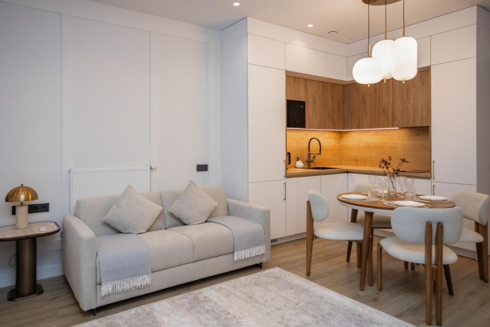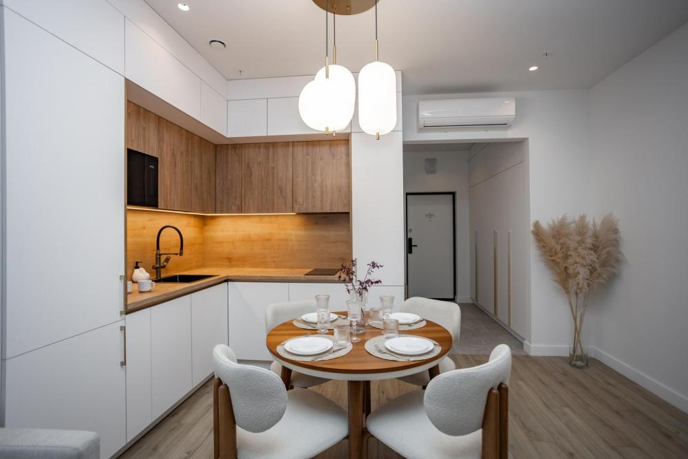 Calma - апартаменты у самого моря для тех, кто ищет вдохновение и покой Почувствуйте море на расстоянии дыхания в апартаментах Calma - стильном и уютном пространстве на первой линии. Здесь всё создано для идеального отдыха: простор, свет и тёплая атмосфера натурального дерева. Просыпайтесь под шум прибоя, наслаждайтесь завтраком на балконе с видом на море и встречайте закаты с бокалом вина — каждый момент здесь наполнен гармонией. Современная кухня полностью оборудована для вашего комфорта — от утреннего кофе до романтического ужина. В спальне — большая кровать с качественным матрасом, обеспечивающим глубокий и спокойный сон. Интерьер продуман до мелочей: мягкие оттенки, уютное освещение, стильная мебель и акценты из натуральных материалов создают атмосферу уюта и лёгкости. Calma — идеальное место для романтических выходных, спокойного отдыха у моря или вдохновляющего уединения. Здесь время замедляется, мысли упорядочиваются, а душа отдыхает.