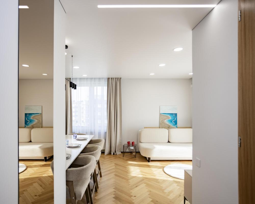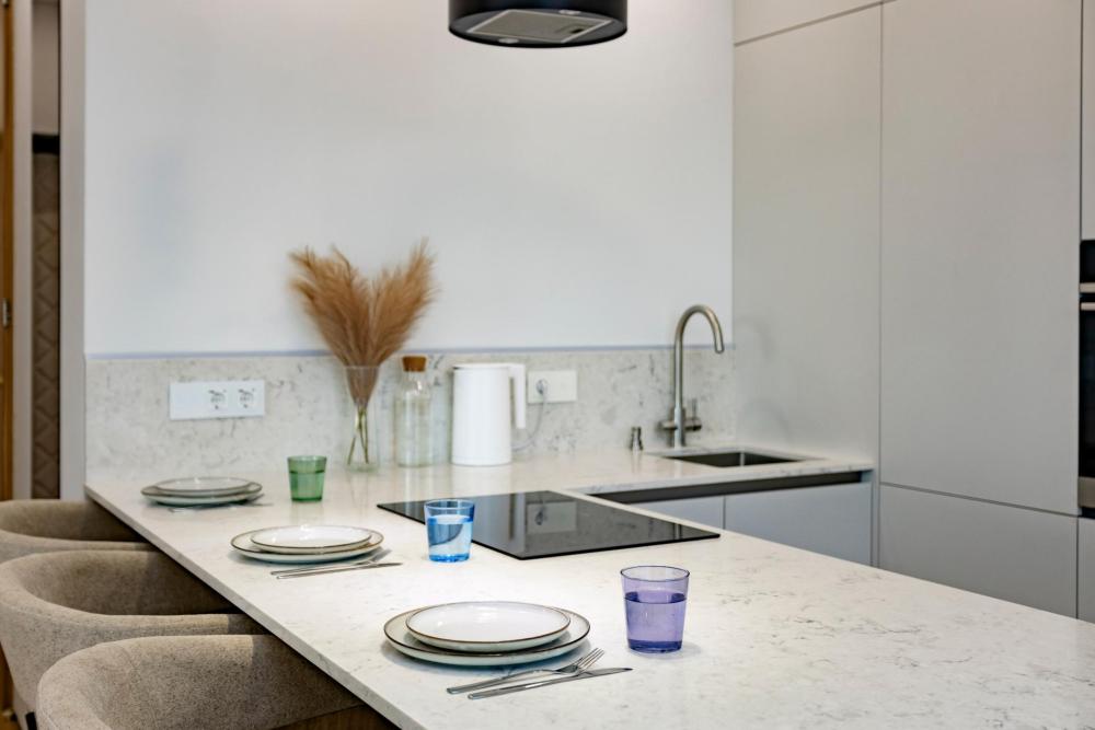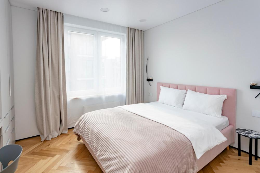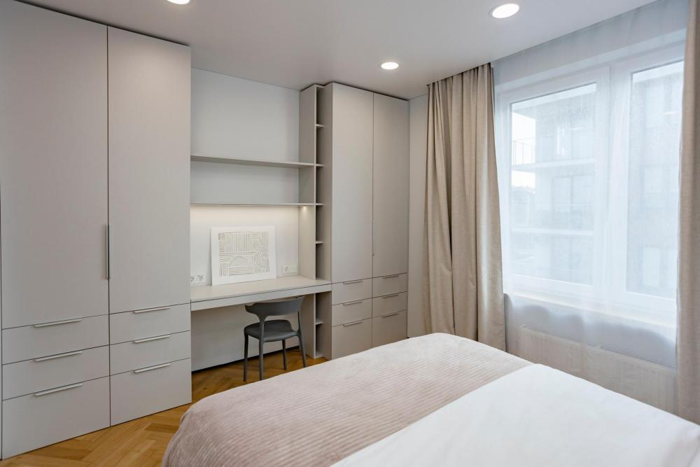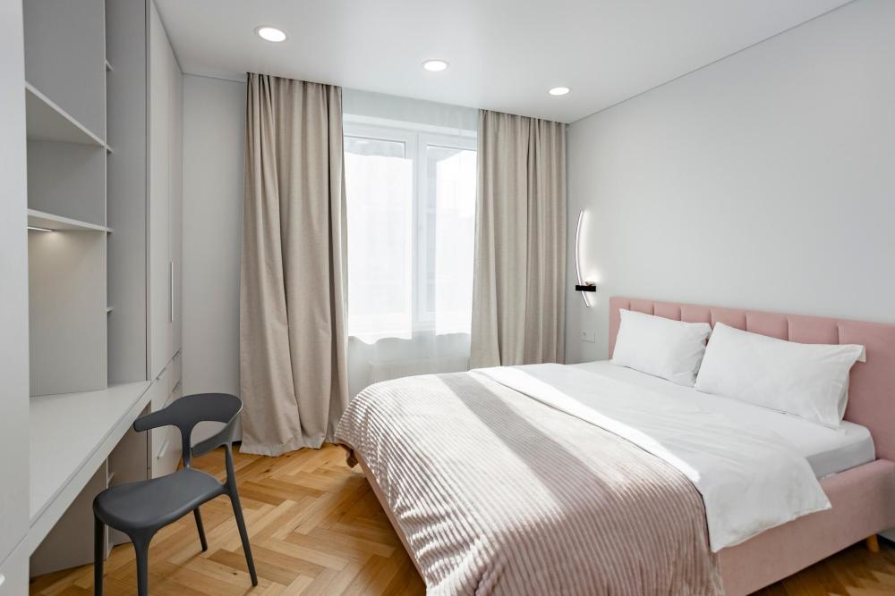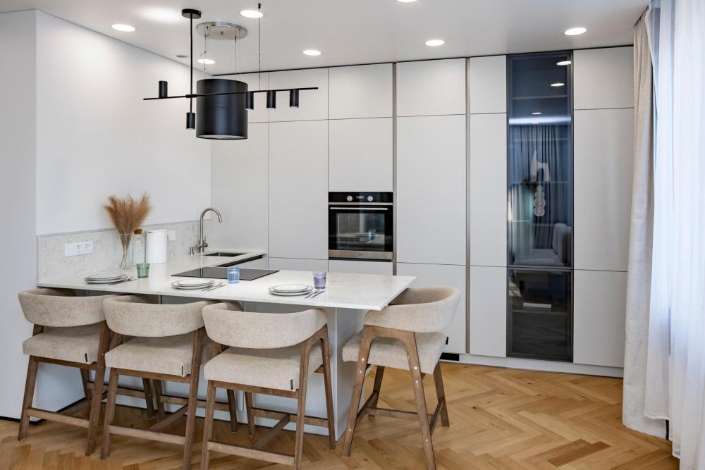 Апартаменты Edelia. Светлые апартаменты оформлены в пастельных тонах с акцентом на натуральные материалы: паркет, эксклюзивные двери в полную высоту и лаконичная мебель создают атмосферу лёгкости и спокойствия. Для удобства в апартаментах есть всё необходимое: полностью оборудованная кухня: индукционная плита, посудомоечная машина, духовой шкаф, холодильник, СВЧ-печь и вся необходимая посуда. Удобная спальня с комфортной кроватью для полноценного отдыха. Стиральная машина со средствами для ухода за вещами. Современная дизайнерская ванная комната. Высокоскоростной Wi-Fi и ТВ для работы и развлечений. Просторный балкон с прекрасным видом — идеальное место для утреннего кофе.