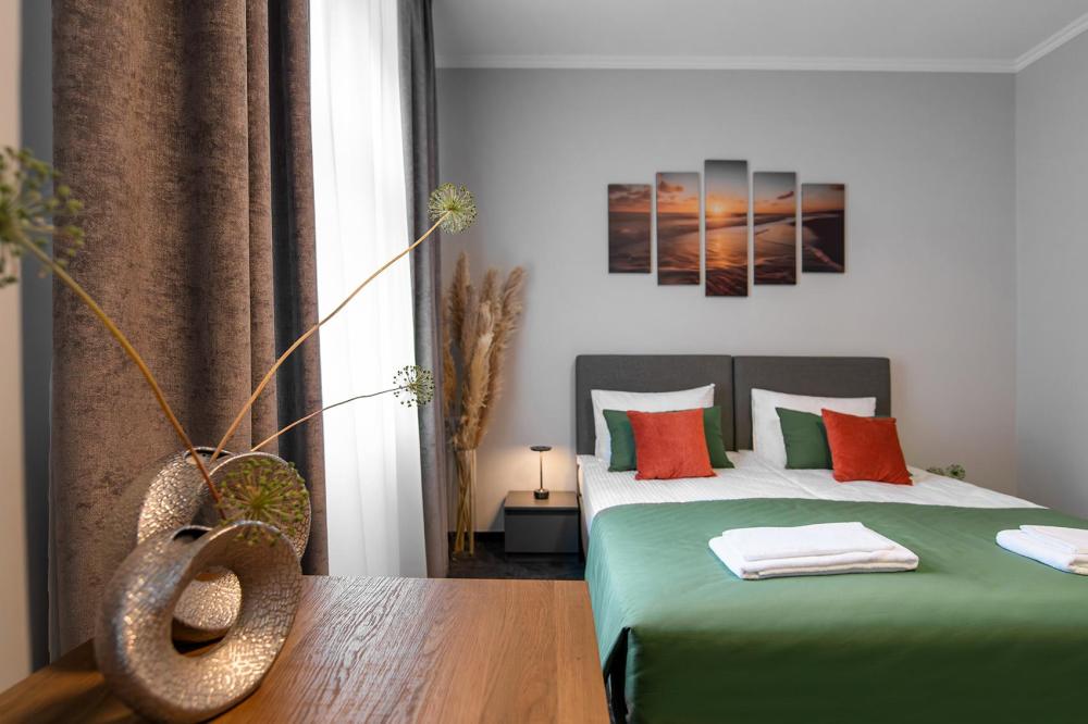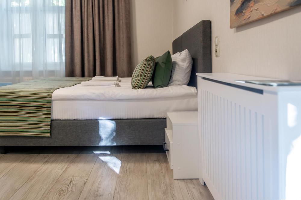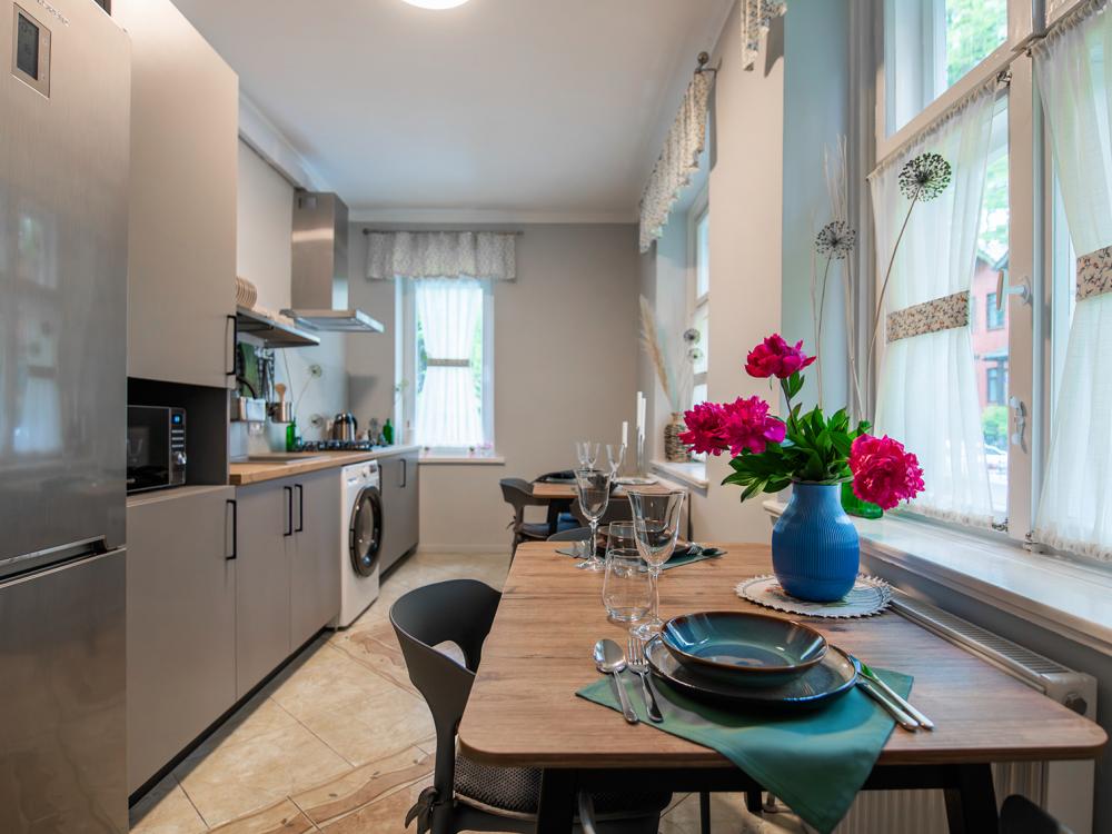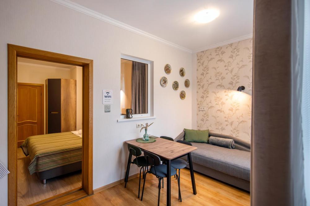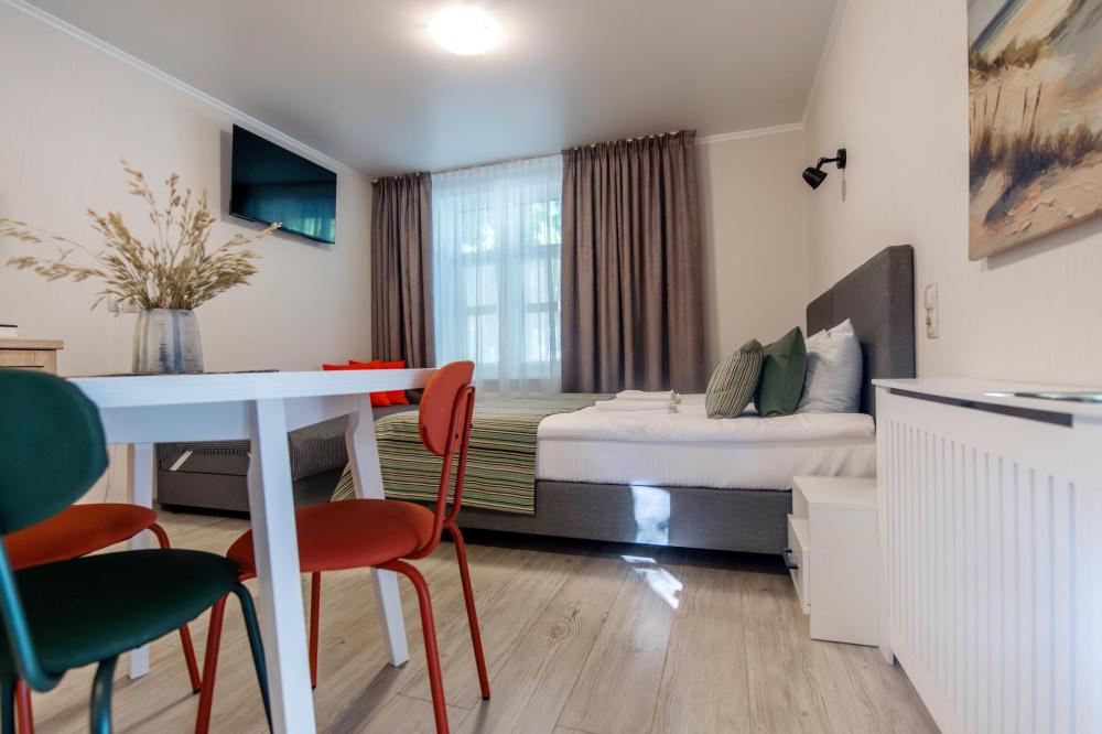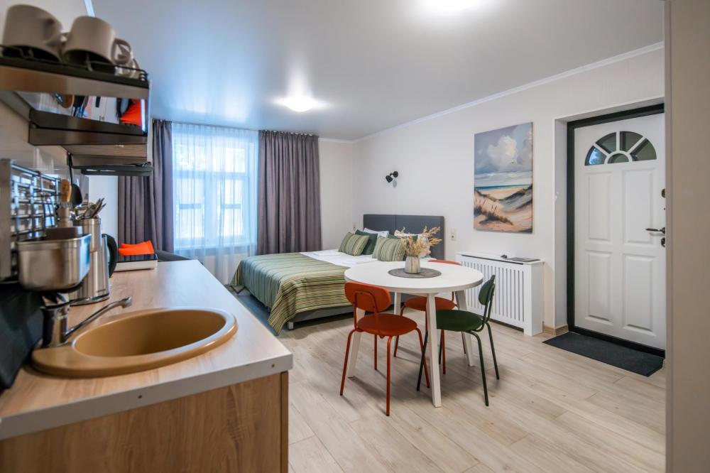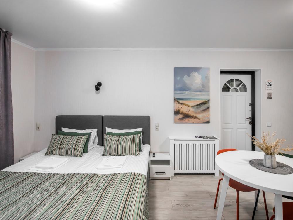 Просторные двухкомнатные апартаменты виллы «Миньон», расположенные в живописном сердце Светлогорска! Это идеальное место для комфортного отдыха, всего в нескольких минутах ходьбы до побережья Балтийского моря, где можно наслаждаться вечерними закатами и мерцающими огнями города. Удобные и просторные кровати создают атмосферу уюта и тепла, где можно насладиться крепким сном и полным расслаблением после насыщенного дня. Общая кухня, расположенная на этаже, оборудована всей необходимой бытовой техникой и полным набором посуды, позволит вам готовить любимые блюда и станет идеальным местом для завтраков и романтических ужинов.