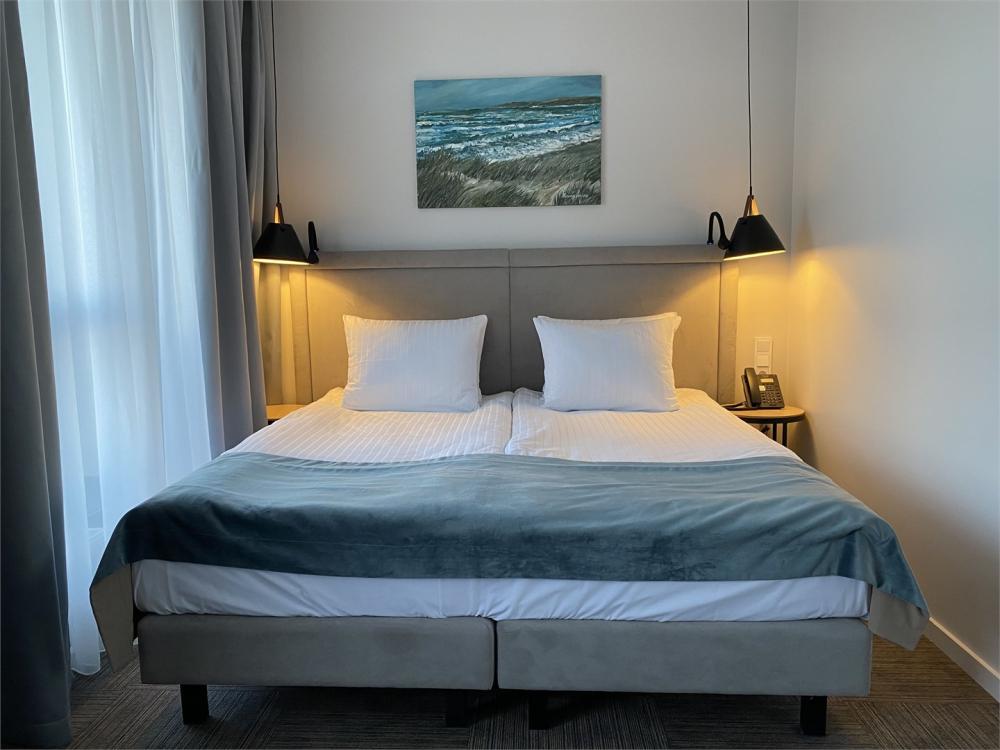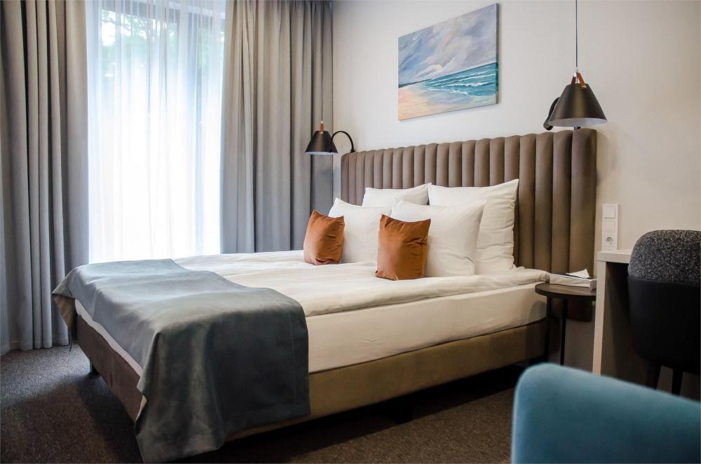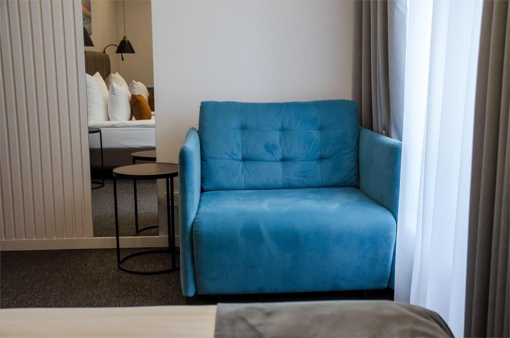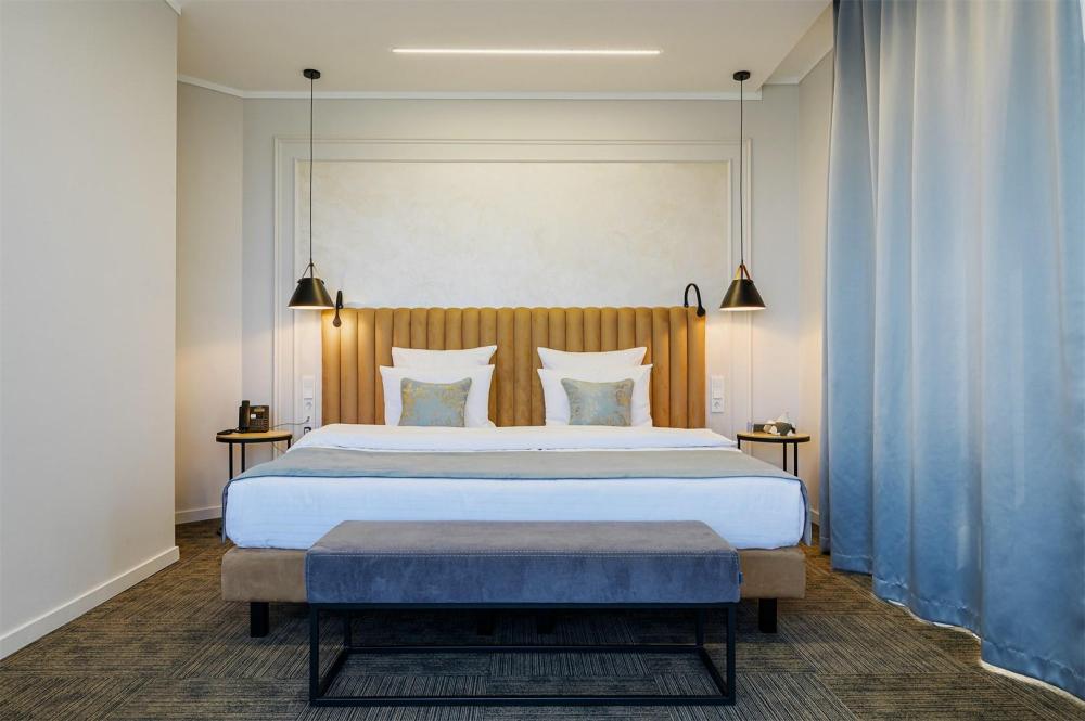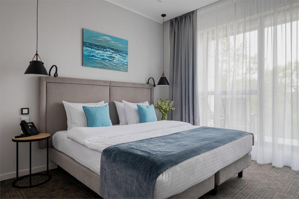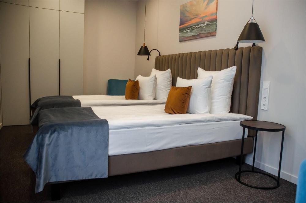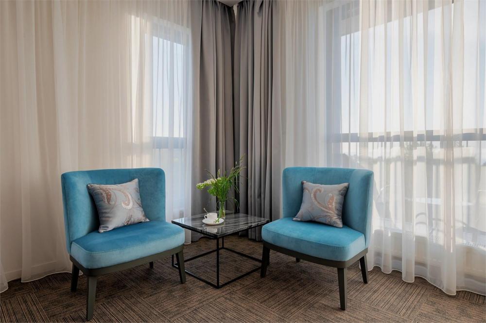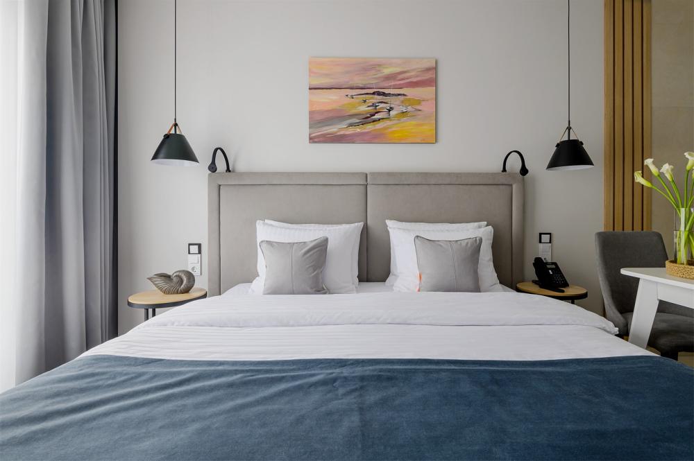 Просторный двухкомнатный номер площадью от 40 до 54 кв.м. Одинаково комфортен как для отдыха, так и для проведения деловых встреч. Номера оборудованы двуспальной кроватью типа "King size" или двумя односпальными. В комнате могут разместиться до 4-ёх человек. Также есть возможность установить детскую кроватку. Большинство номеров имеют балкон.
