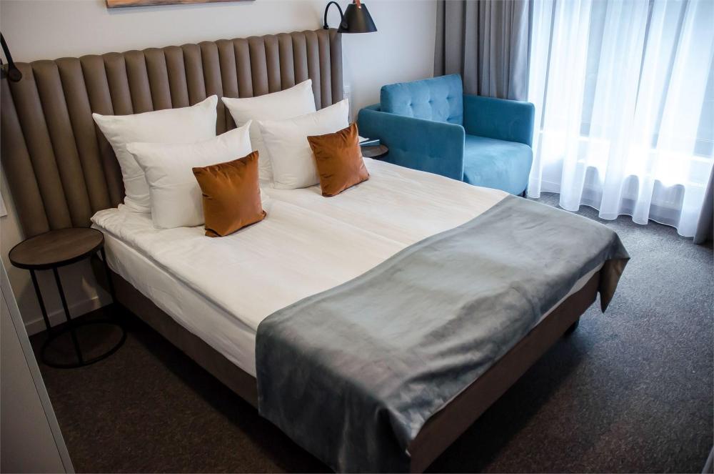 Уютный однокомнатный номер площадью 19-23 кв.м с видом на парк или город. Прекрасное решение для тех, кто путешествует в одиночку или вдвоем. Номера оборудованы двуспальной кроватью типа "King size" или "Queen size". В данной категории большая часть номеров с балконом.