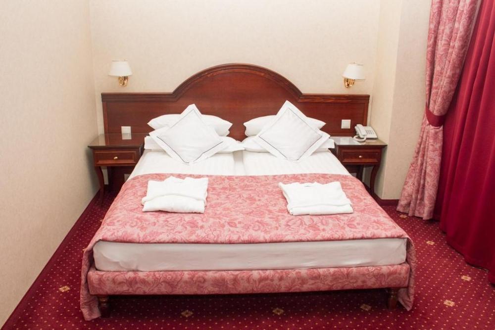 Улучшенный однокомнатный номер на 1 персону / 2 персоны В номере: двуспальная кровать прикроватные тумбочки, стол, стул, кресло, телевизор с плоским экраном, спутниковые каналы, кондиционер, отопление, ковровое покрытие, телефон, Wi-Fi с бесплатным доступом в Интернет, холодильник, мини-бар, зеркало, шкаф/гардероб, система электронных замков. В ванной: душ/ванна туалет, биде, раковина, вентилятор, средства индивидуальной гигиены, халат, набор полотенец, тапочки, зеркало, фен. Услуга «звонок-будильник».