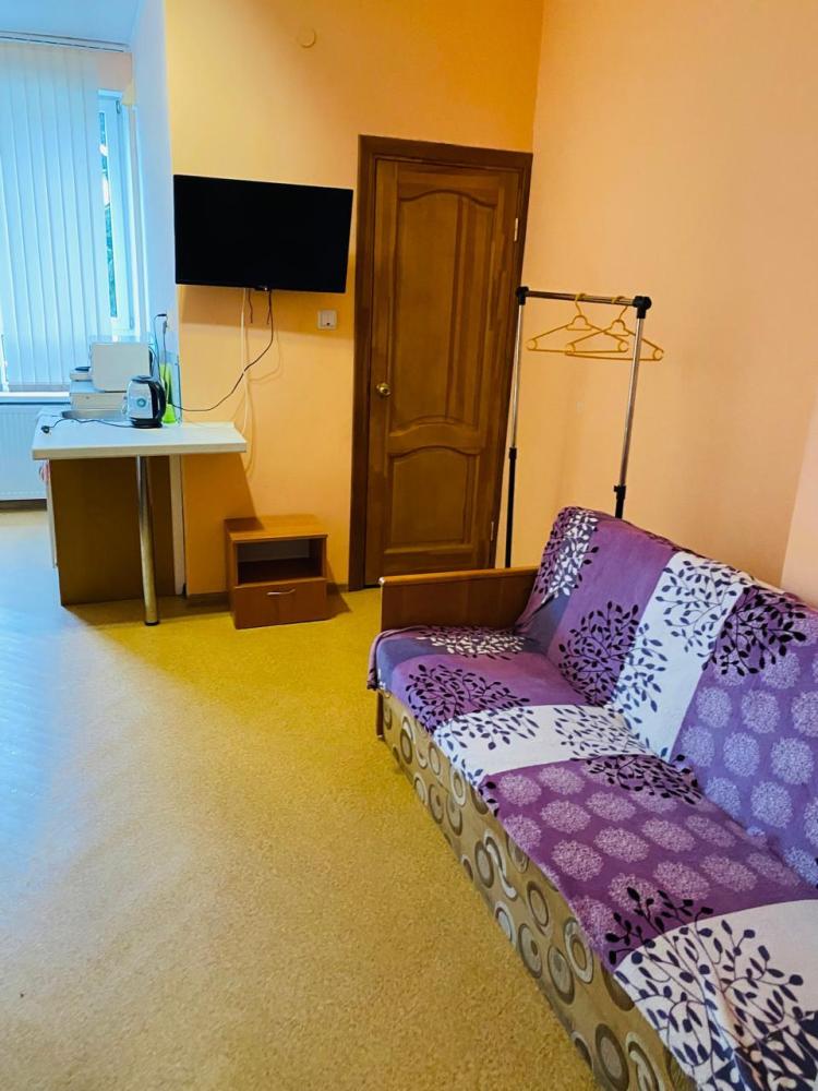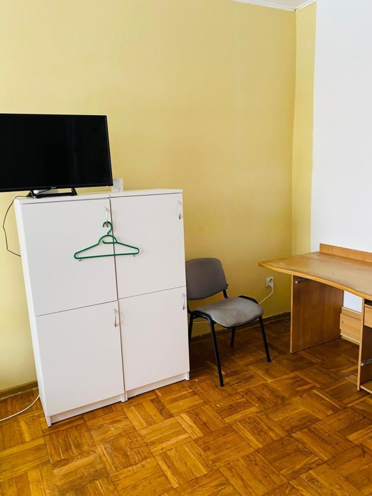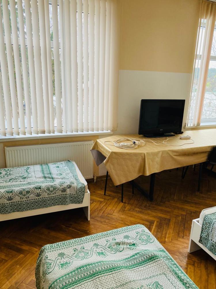 Кровать в десятиместном номере. Общая кухня и санузел на этаже. На кухне имеется, все для приготовления пищи. В комнате: шкаф для одежды, телевизор, холодильник. Комплект постельного белья, набор полотенец.