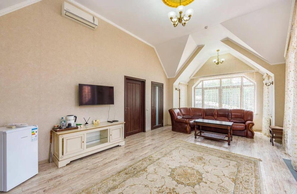 Удобные двуспальные комнаты категории «Люкс». В комнатах особенная атмосфера, созданная благодаря тёплой цветовой гамме и дизайнерской мебели. Деревянные элементы и мягкие тона создают ощущение гармонии и уюта. Стильная и просторная гостиная с мягким диваном и рабочей зоной. Уютная спальня с просторной кроватью.