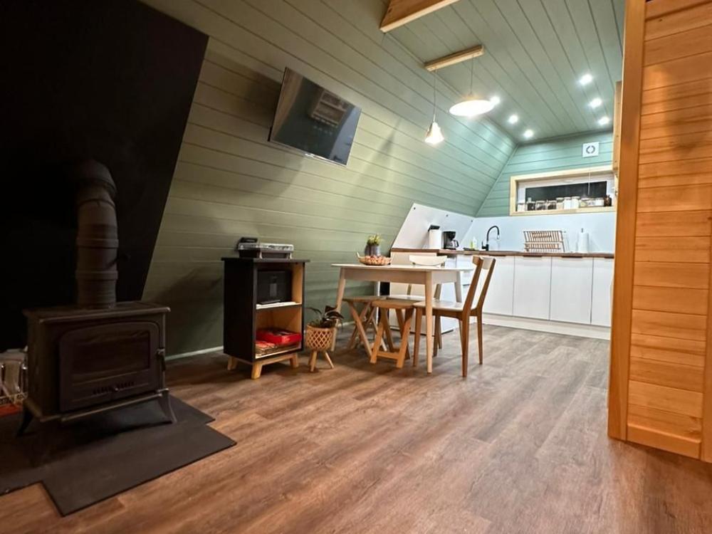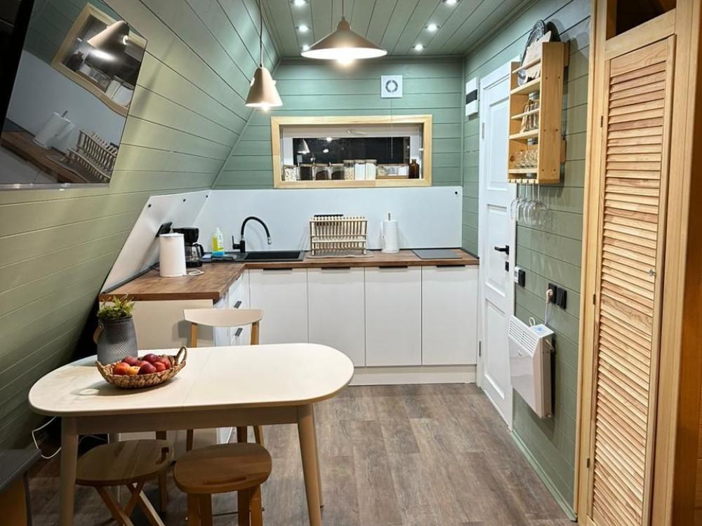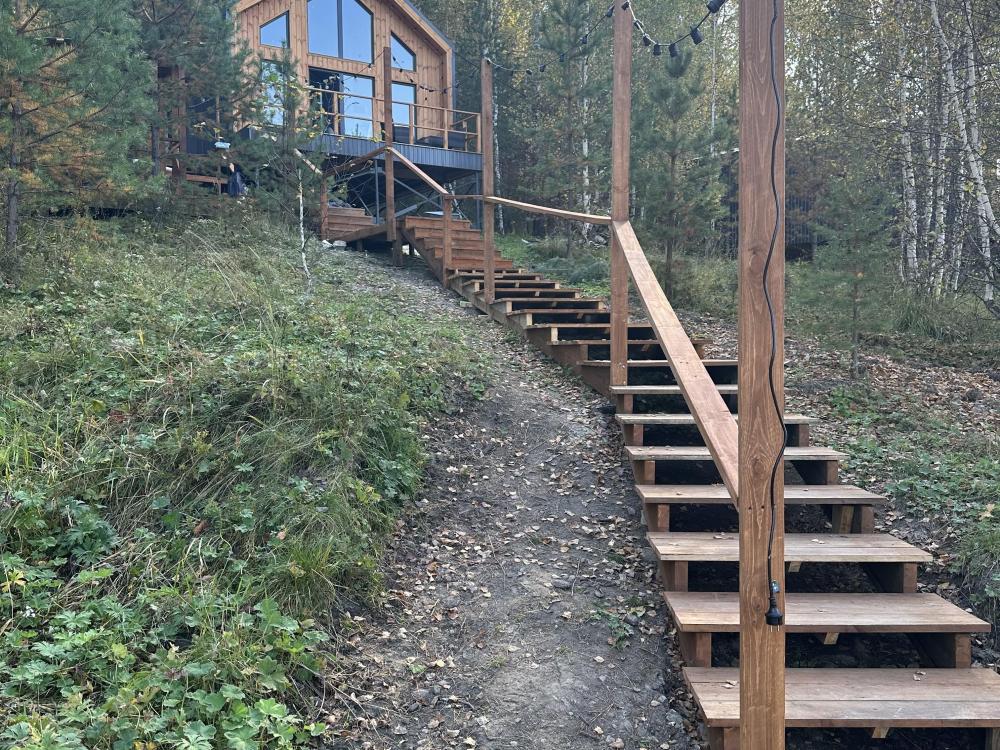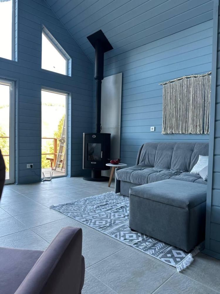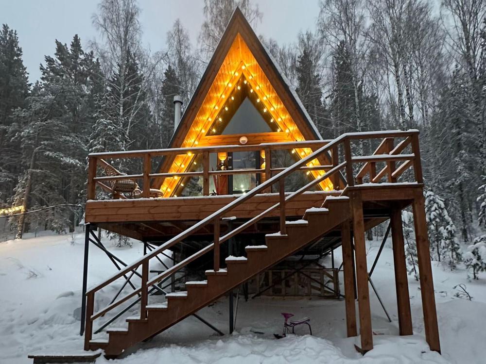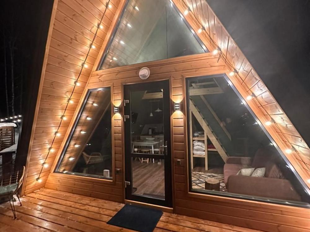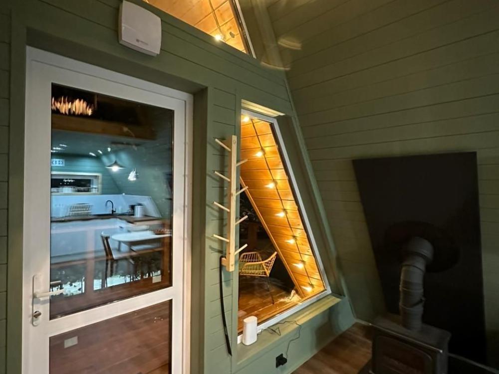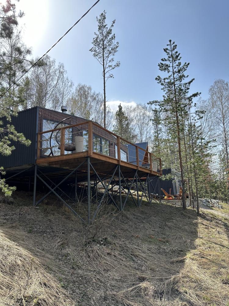 Треугольный дом в стиле А-фрейм с панорамным остеклением и шикарным видом. Спальня на антресоли, второй свет, камин, кухня, санузел диван, большая терраса. Тихое место в окружении леса и гор.