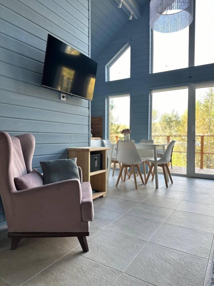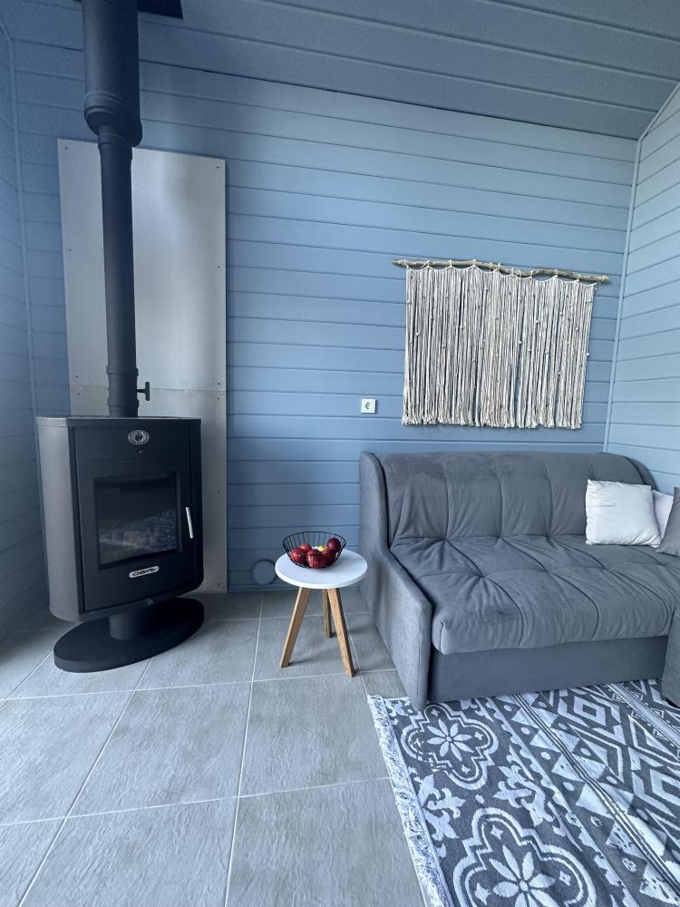 Дом в стиле барнхаус с вторым светом, камином, терассой. Две спальни на первом этаже, антресольная спальня на втором и большой диван-кровать в гостиной. Просторный санузел. Мангальная зона.