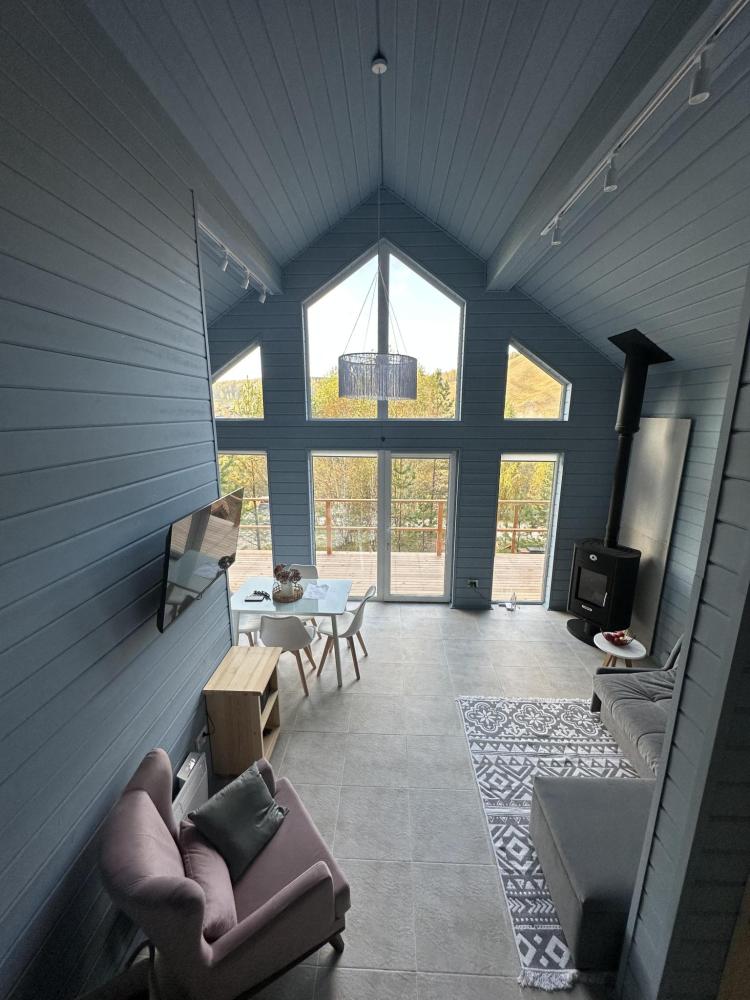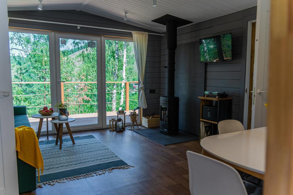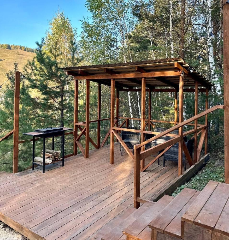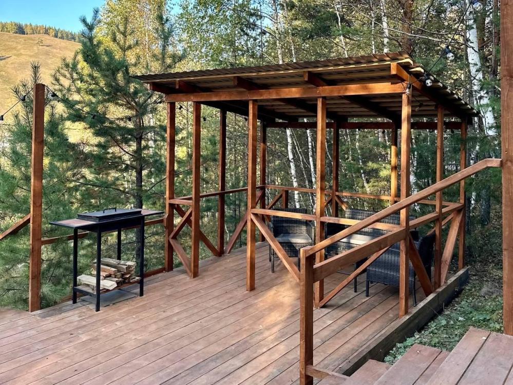 Уникальный видовой дом с камином, террасой, панорамными окнами и потрясающим видом на горы. Расположенный на склоне горы в хвойном лесу над рекой. Две спальни с санузлам, кровати размера кингсайз и белоснежное бельё. кухня гостиная с камином и выходом на террасу. Мангальная зона с беседкой и всем необходимым. Баня на дровах. Посуда и все необходимые расходники. Костровище с атмосферным освещением и панорамным видом на горы.