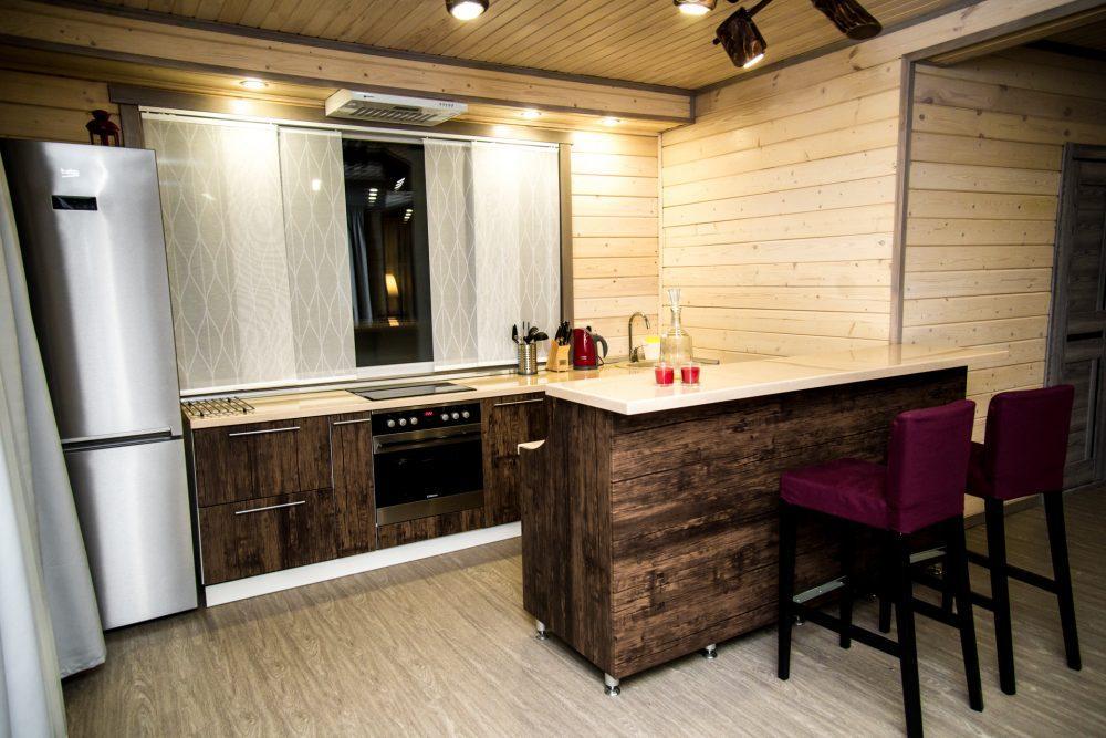 Двухуровневая студия 54-60 кв.м. с кухонной зоной. Расположена на 2 этаже шале (корпуса) На 1 уровне студии в общем пространстве расположены зоны, гостиная и кухонная. Установлен диван для отдыха (может являться дополнительным спальным местом для 1-2 гостей), ТВ-панель. На 2 уровне студии (не этаж / второй свет над гостиной) расположена спальная зона, установлено 2 односпальные кровати (с возможностью объединения топпером в 1 двуспальную). Кухонная зона оборудована варочной панелью, духовым шкафом, холодильником, чайником, столовой посудой и столовыми приборами, посудой для приготовления еды. Ванная комната с душевой кабиной и феном. Между 1 и 2 уровнем студии установлена винтовая либо деревянная лестница. На этапе бронирование выбор типа лестницы в студии не подтверждается. * дизайн номеров может отличаться