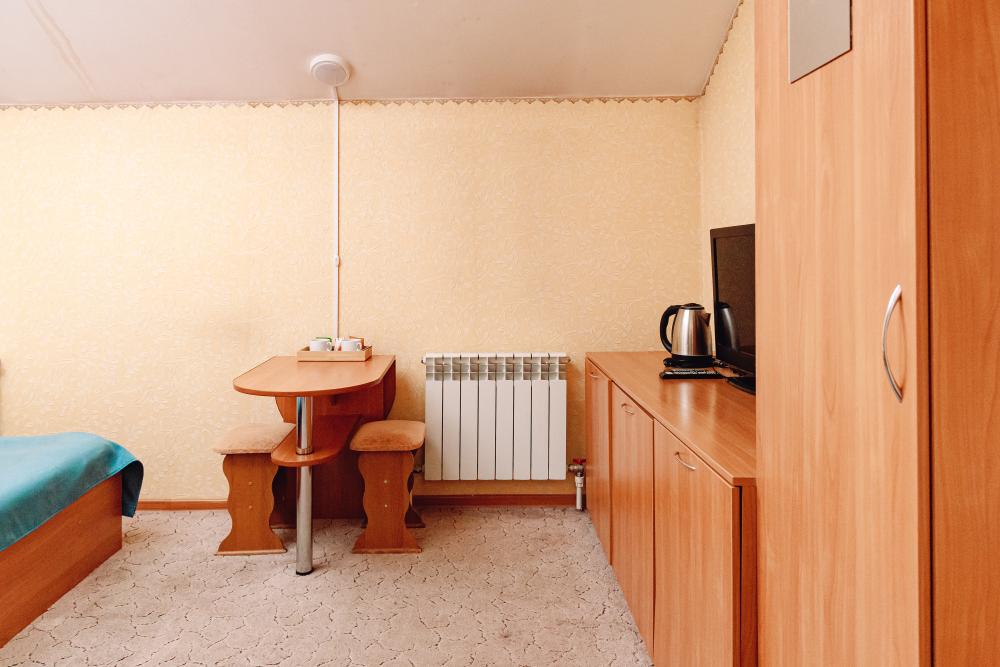 Двухместный номер, с двумя раздельными односпальными кроватями и 1 креслом-кроватью, которое можно использовать как дополнительное спальное место. В номере: Душ, туалет, телевизор, холодильник, чайник, посуда, полотенца, одноразовые тапочки, одноразовые средства гигиены.