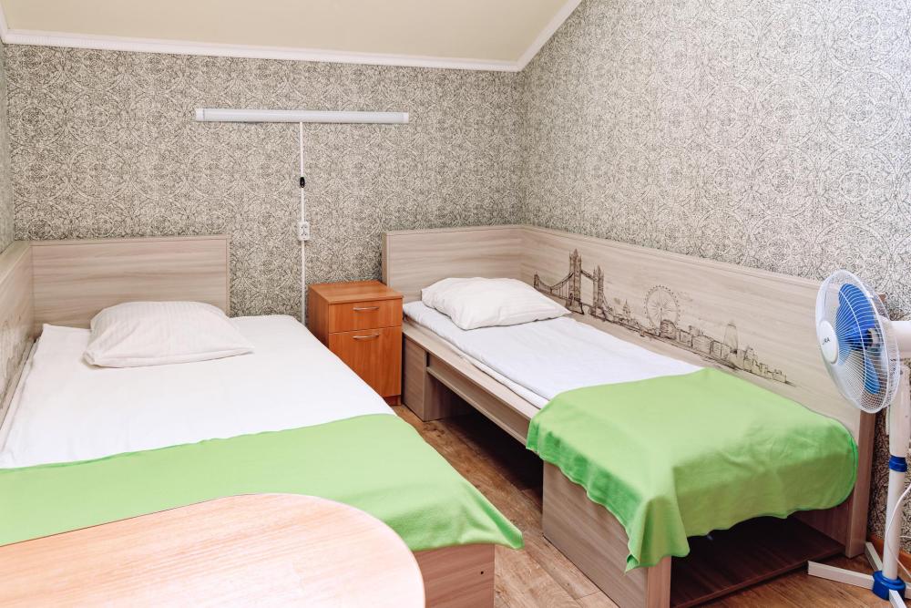 Двухместный номер, с двумя раздельными односпальными кроватями. В номере: Душ, туалет, телевизор, холодильник, чайник, посуда, полотенца, одноразовые тапочки, одноразовые средства гигиены.