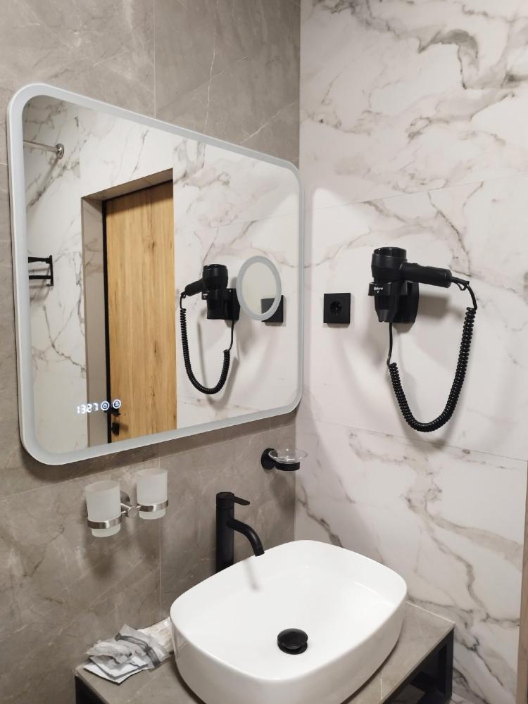 В комнате: две стандартные кровати, прикроватные тумбы, тумба с холодильником, стол, шкаф, телевизор, телефон, мини-бар. В ванной комнате: душевая кабина, раковина, унитаз, фен, комплект полотенец, туалетные принадлежности