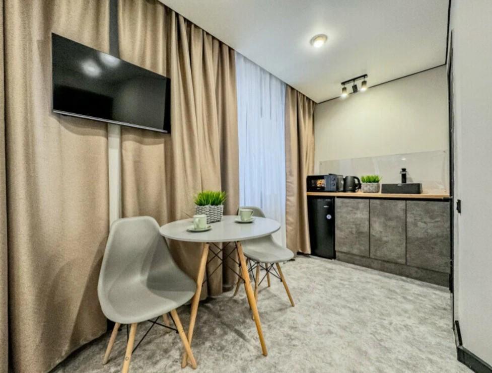 Однокомнатный номер со всеми удобствами, двуспальная кровать либо 2 односпальные. В номере есть кондиционер, телевизор, предоставляется чайник, холодильник. Номер оснащен ванной.
