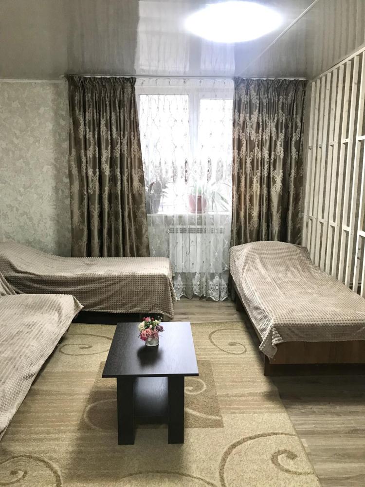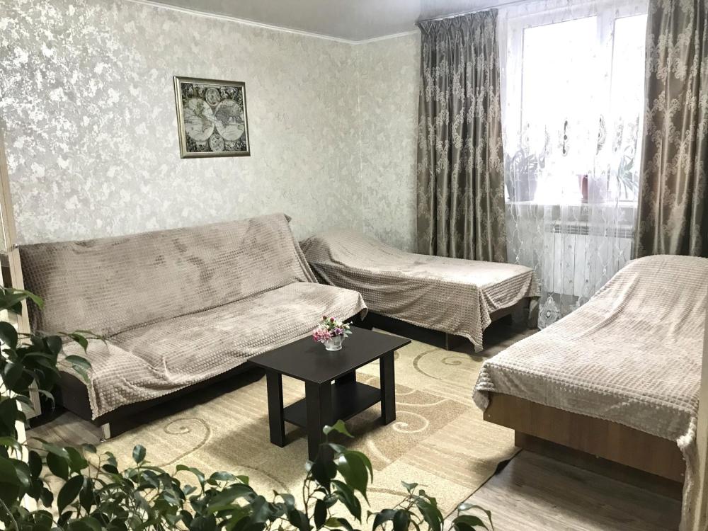 Двухкомнатные апартаменты для 4 гостей. Расположена на первом этаже двухэтажного дома рядом с парком им. Горького. Мебель: 2 односпальные кровати и двуспальная кровать, прикроватные тумбочки , комод, журнальный столик. Кухонный гарнитур. Бесплатно предоставляется: постельное белье + полотенца, холодильник, стиральная машина, микроволновка, утюг и гладильная доска, телевизор, интернет Wi-Fi.