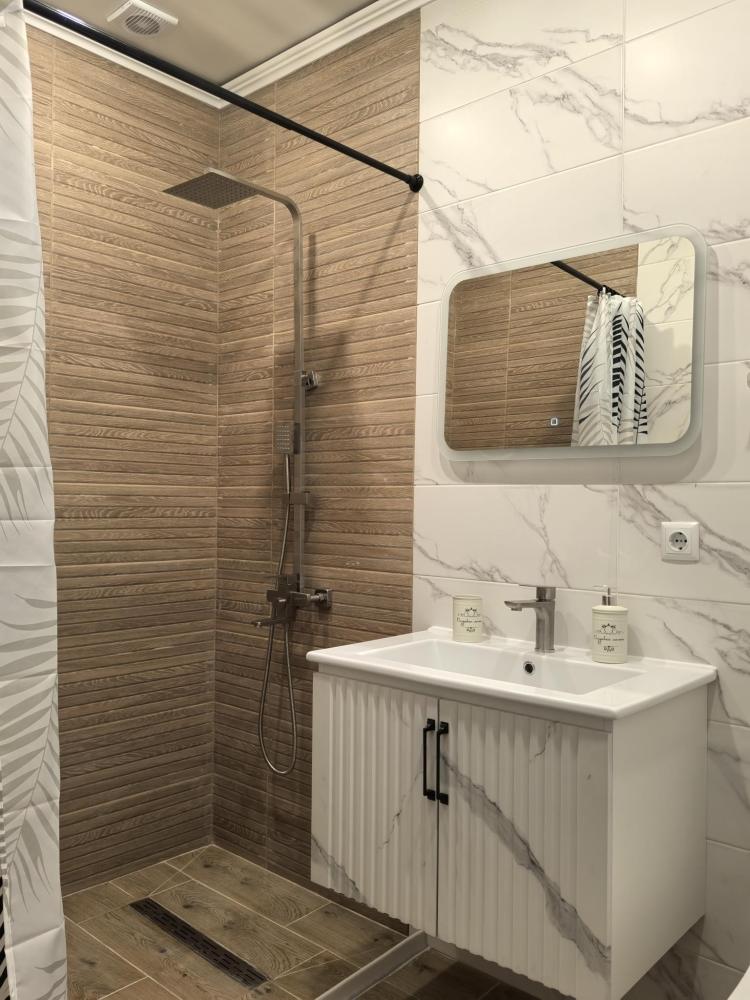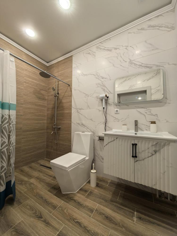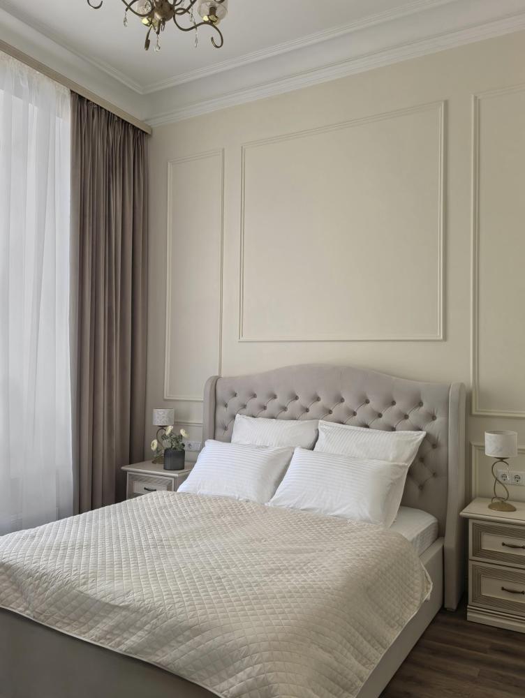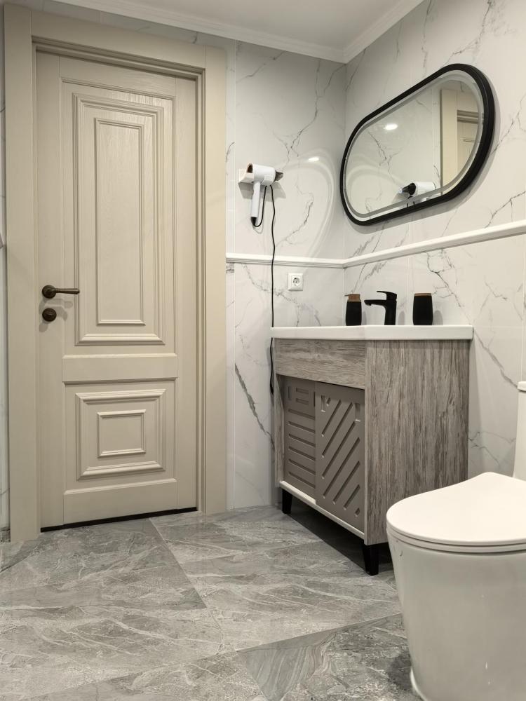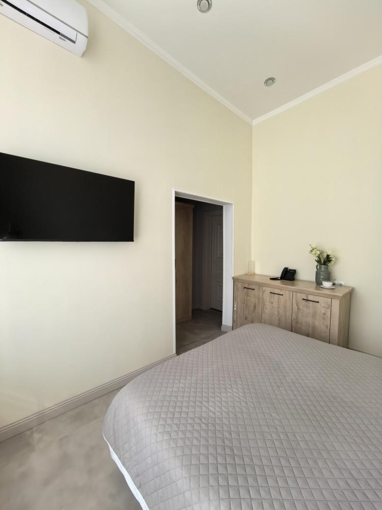 В номере двуспальная кровать. Функциональное наполнение номера : ТВ, Wi-Fi, кондиционер, чайник, комплект чашек, стаканов и бокалов, чайный набор, бутилированная питьевая вода негазированная. Ванная комната: набор полотенец, халаты, тапочки, фен, основные туалетные принадлежности: гель, шампунь, зубной набор.