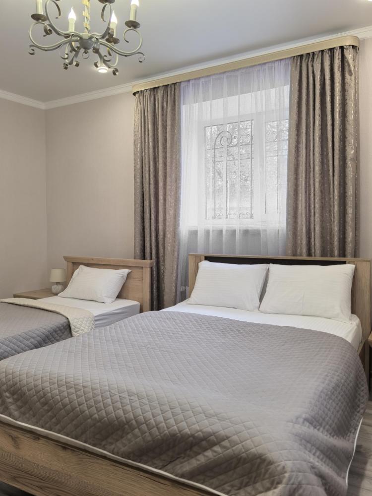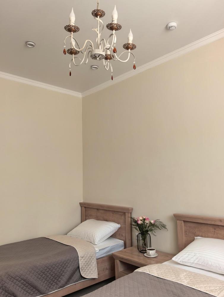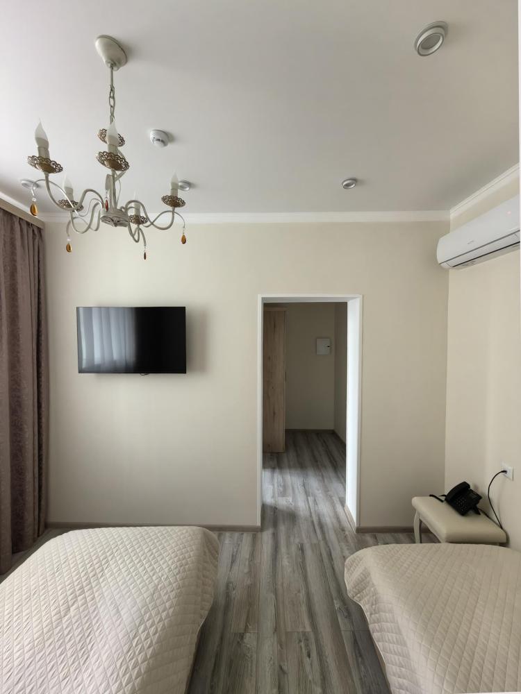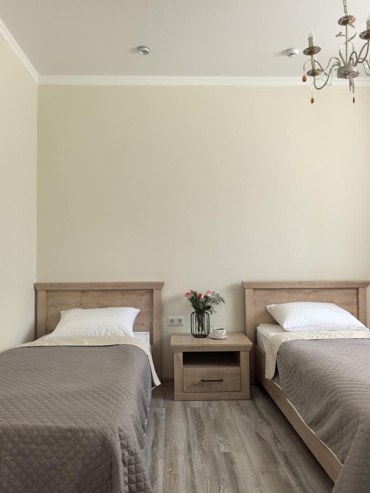 В номере две раздельные односпальные кровати. Функциональное наполнение номера: ТВ, Wi-Fi, кондиционер, чайник, комплект чашек и стаканов, чайный набор, бутилированная питьевая вода негазированная. Ванная комната: набор полотенец, халаты, тапочки, фен, основные туалетные принадлежности: гель, шампунь, зубной набор.
