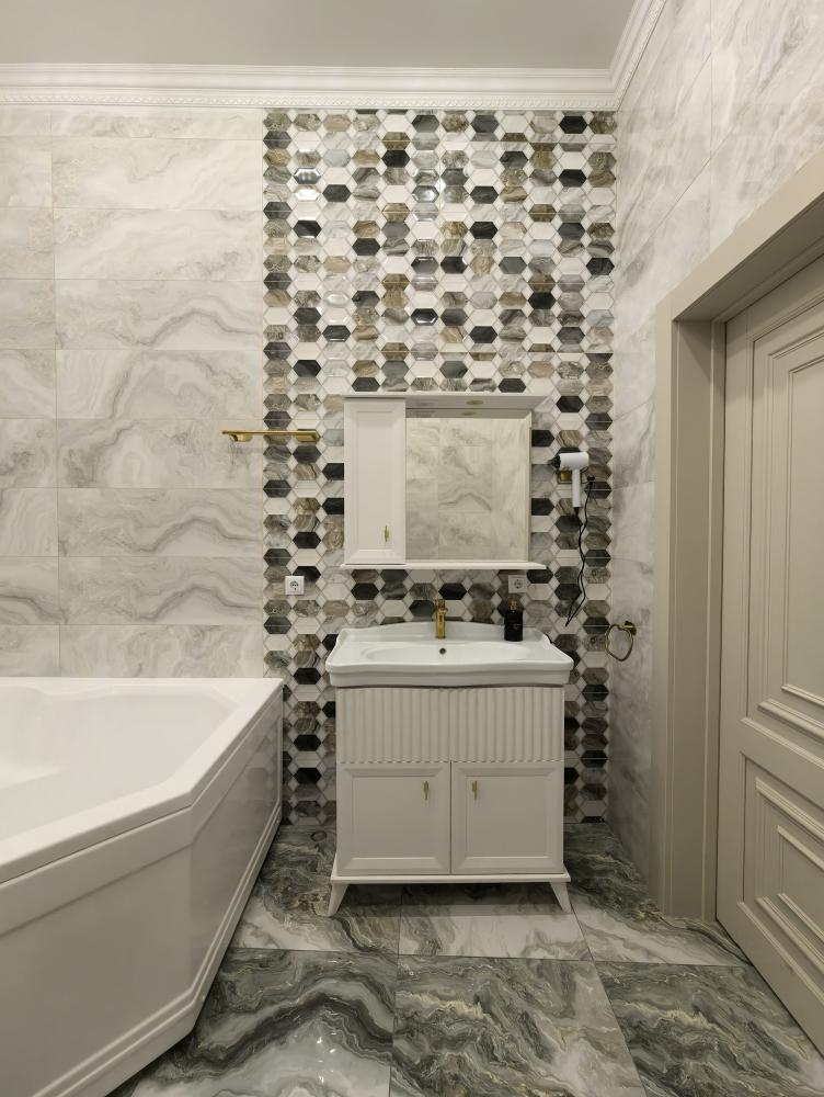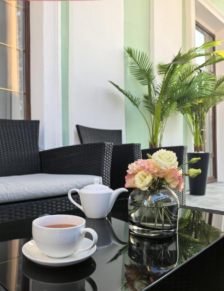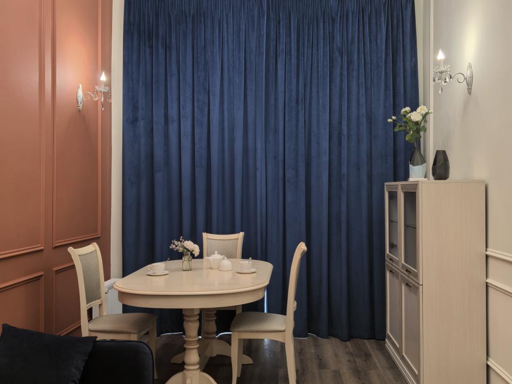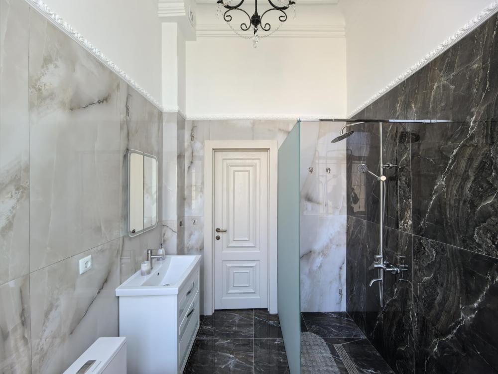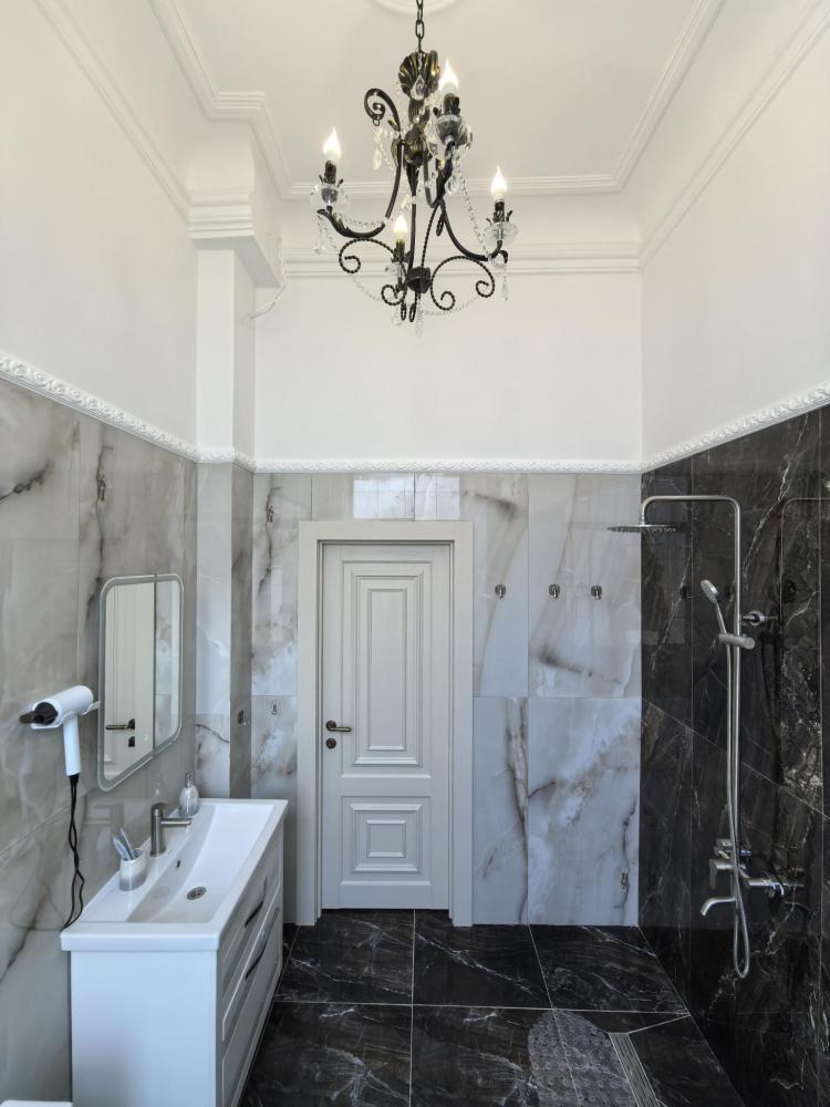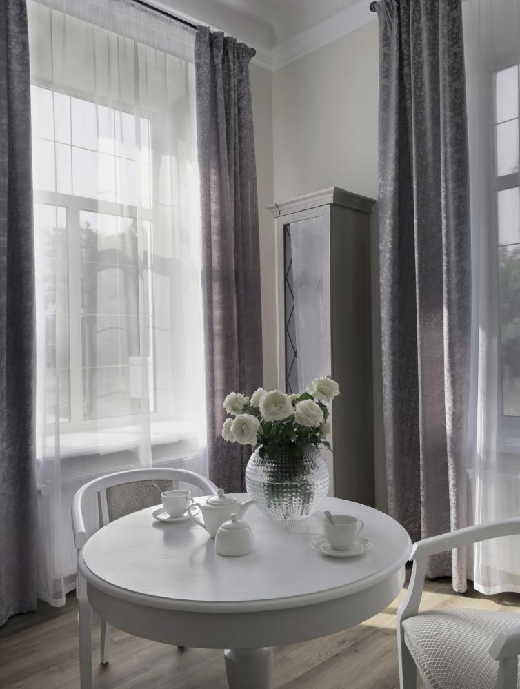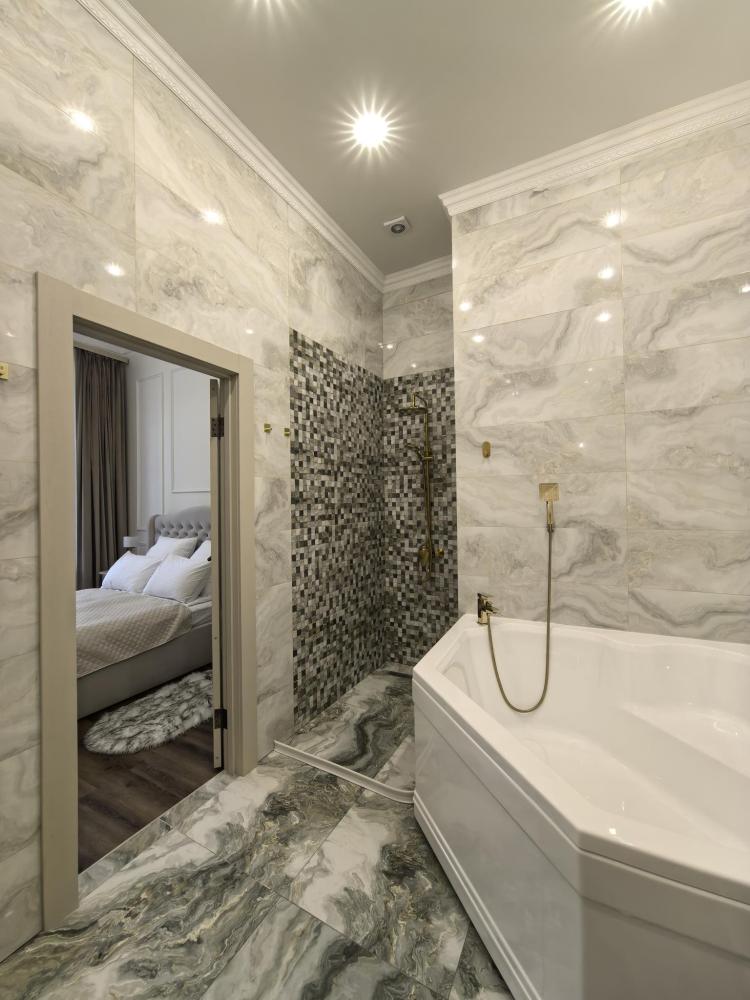 В номере двуспальная кровать и диван на два спальных места. Функциональное наполнение номера: ТВ, Wi-Fi, кондиционер, чайник, комплект чашек, стаканов и бокалов, чайный набор, бутилированная питьевая вода негазированная. Набор полотенец, халаты, тапочки, фен, основные туалетные принадлежности: гель, шампунь, зубной набор.