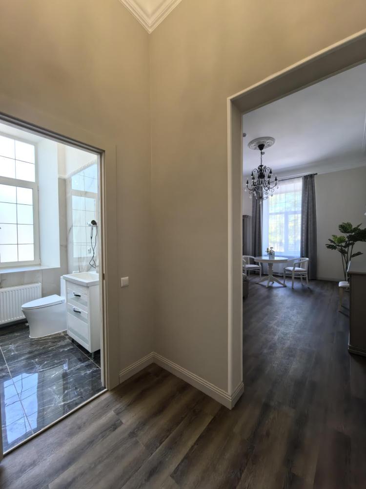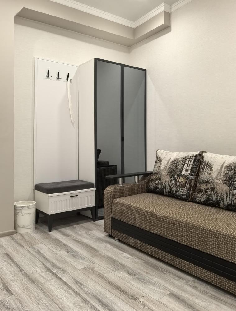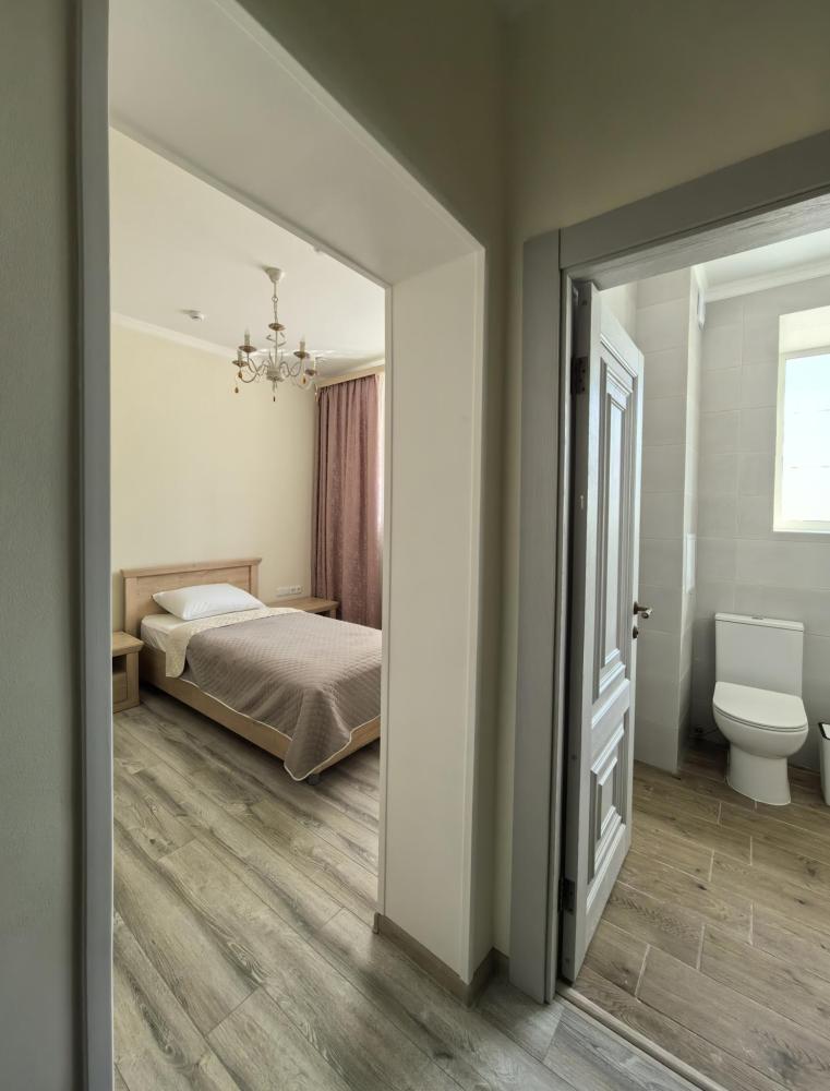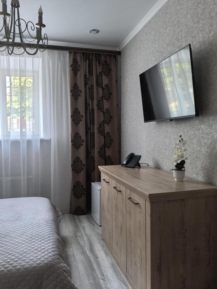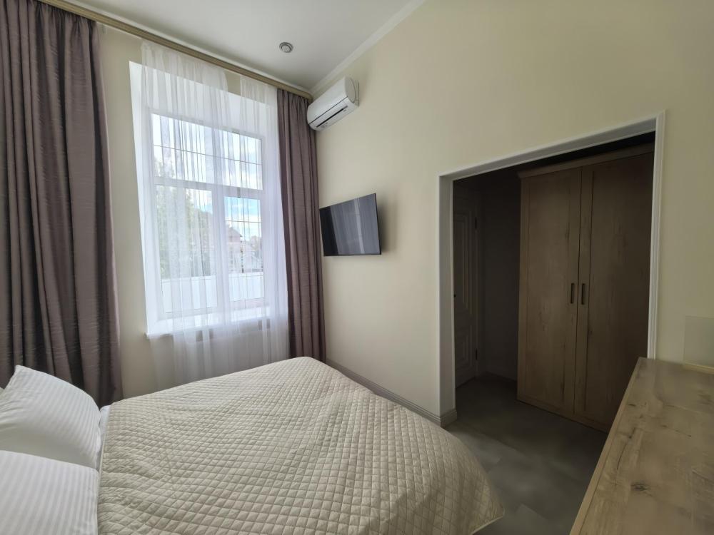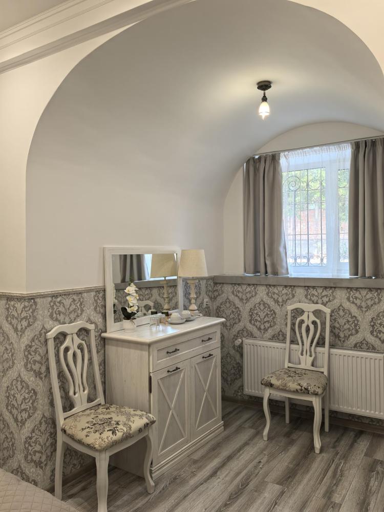 Номере оборудован зоной для чаепития, рабочим местом. В номере: двуспальная кровать и диван на два спальных места. Функциональное наполнение номера: ТВ, Wi-Fi, кондиционер, чайник, комплект чашек, стаканов и бокалов, чайный набор, бутилированная питьевая вода негазированная. Душевая и ванная, набор полотенец, халаты, тапочки, фен, основные туалетные принадлежности: гель, шампунь, зубной набор.