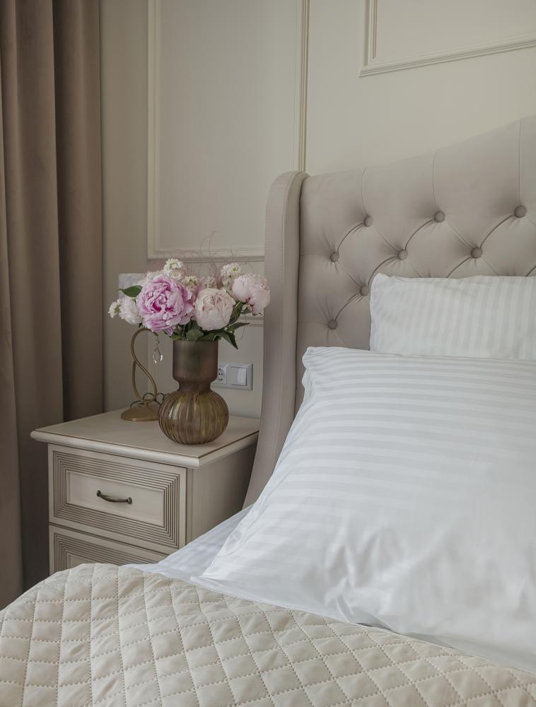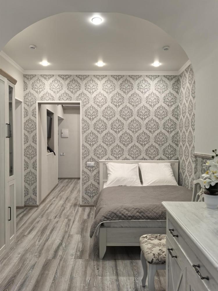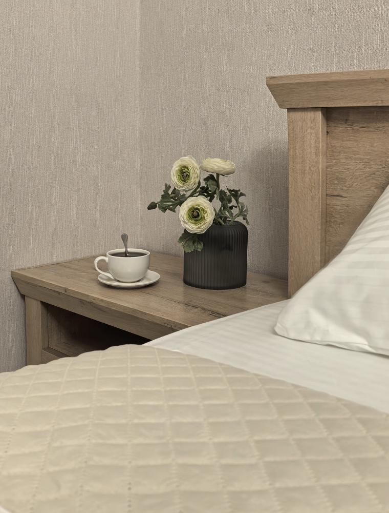 В номере одна двуспальная кровать. Функциональное наполнение номера: ТВ, Wi-Fi, кондиционер, чайник, комплект чашек и стаканов, чайный набор, бутилированная питьевая вода негазированная. Ванная комната: набор полотенец, халаты, тапочки, фен, основные туалетные принадлежности: гель, шампунь, зубной набор.