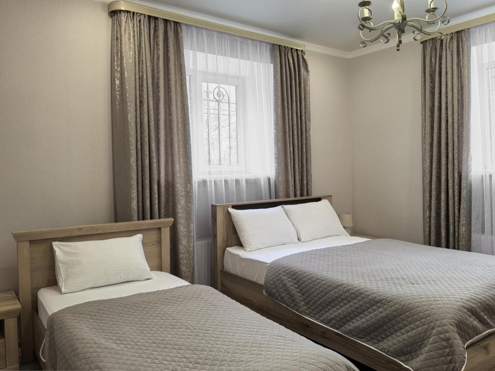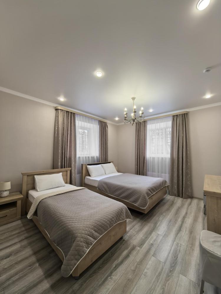 Номер с двумя раздельными односпальными кроватями. Функциональное наполнение номера: ТВ, Wi-Fi, кондиционер, чайник, комплект чашек и стаканов, чайный набор, бутилированная питьевая вода негазированная. Ванная комната: набор полотенец, халаты, тапочки, фен, основные туалетные принадлежности: гель, шампунь, зубной набор.