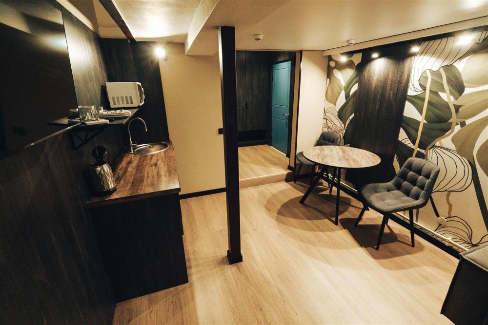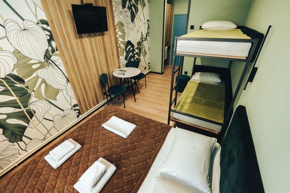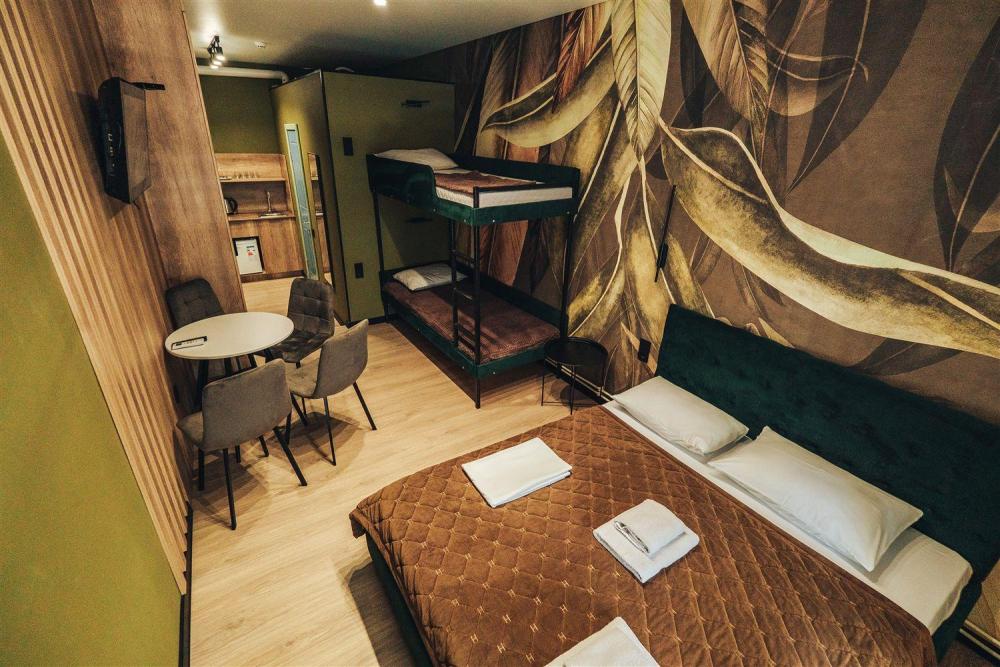 •Количество основных мест: 2 и 2 доп. места •Кондиционер •Душ и санузел •Wi-Fi •Цифровое телевидение •Стенной шкаф •Фен •Холодильник •Чайник •Микроволновая печь •Душ и санузел •Туалетные средства •Набор постельного белья •Банные полотенца и халаты В номере данной категории предлагается гостям одна двуспальная кровать и двухъярусная либо двуспальная и диван, функциональная мебель, телевизор, индивидуальная система кондиционирования. Санузел совмещен с душем, оснащен феном, в номере имеется небольшой холодильник микроволновая печь и чайник.