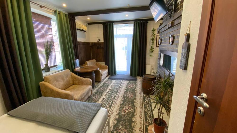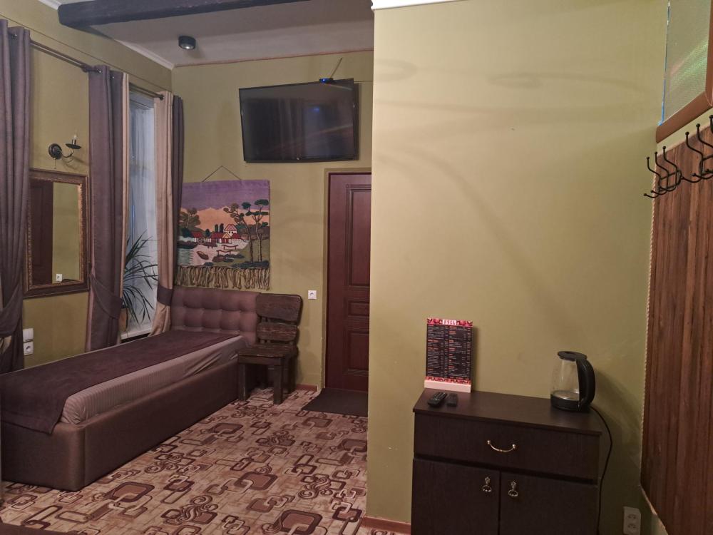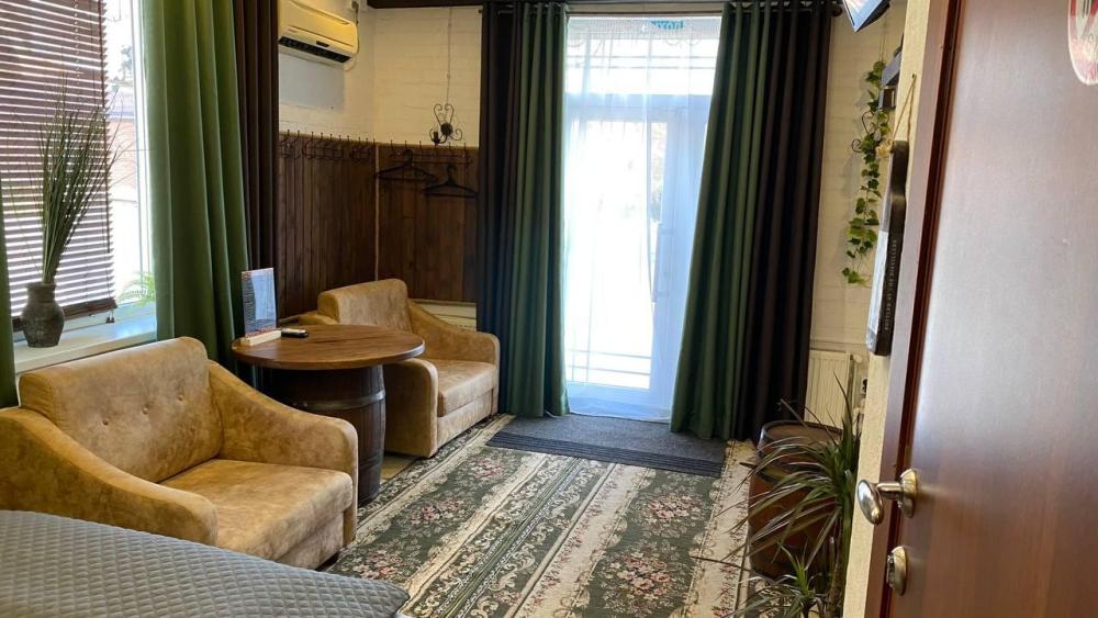 Отдельный номер с полуторным диваном и креслом. Оснащен: ТВ, кондиционер, холодильник, с/у с душем. Свежее постельное белье и полотенца.