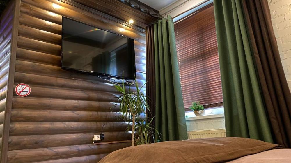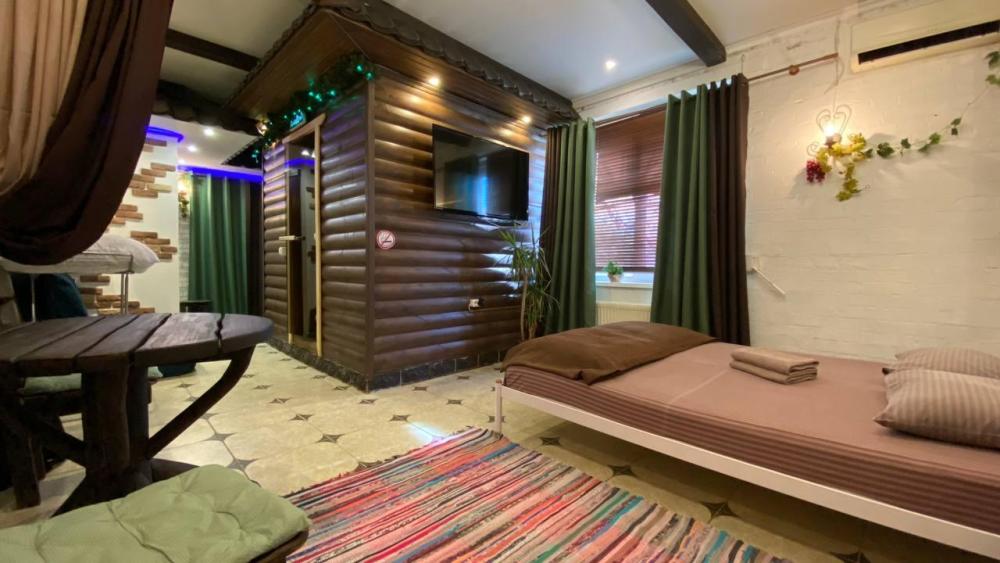 Комфортный номер с оригинальной планировкой. В номере находятся двуспальная кровать, кресло кровать в качестве доп места. Кондиционер, телевизор, холодильник, электрический чайник, посуда. Главная особенность номера, это русская баня. Баня оплачивается по отдельному тарифу.
